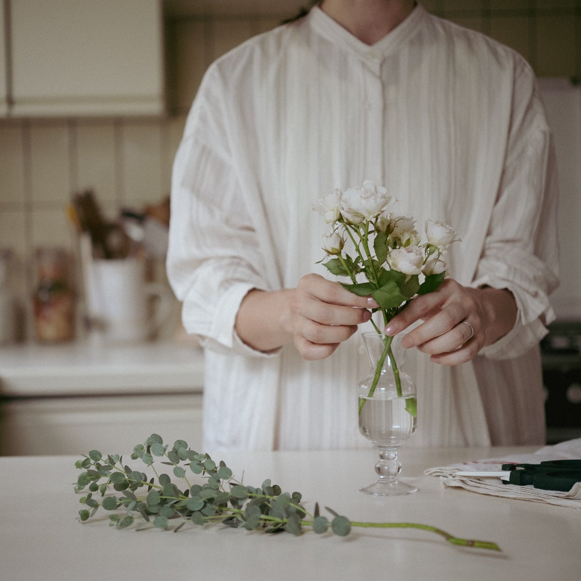 「北欧、暮らしの道具店」において幾度となく紹介してきた「花のある暮らし」を気軽に始められ、これからの日々も無理なく続けられるように、花を一輪挿すだけで様になる2種類(stem/pot)の花びんです。また、学業・仕事・子育てなど、人生の中に訪れる、“花を飾る余裕をもてない時期”も肯定できるように、ヴィンテージ食器の販売からはじまった「北欧、暮らしの道具店」らしいアンティーク調のデザインでオブジェとしても楽しめるという仕様になっています。