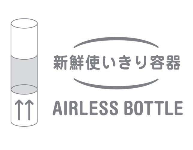 最後まで残さず新鮮に使えるエアレスボトルを採用。空気の戻りがないエアレス構造。使用にともないボトル底が上がり、中身を押し出します。