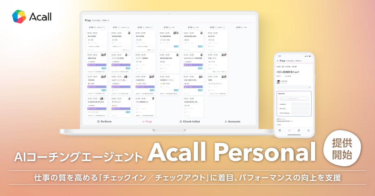 Acall、ハイブリッドワーク時代の新たな働き方をサポートする AIコーチングエージェント「Acall Personal」を提供開始