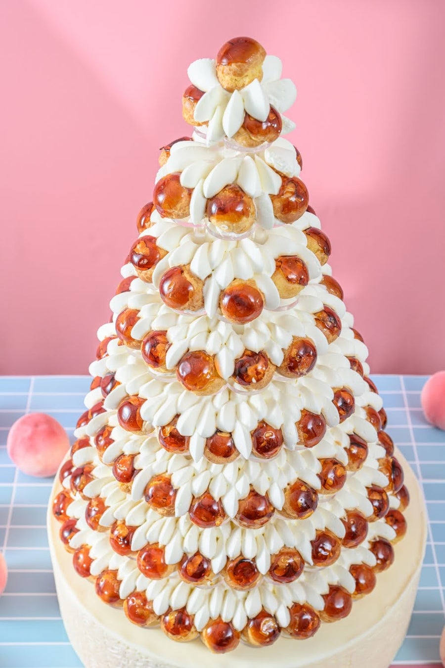 可愛らしいキャラメルシューに優しいカスタードクリームをたっぷりと詰め込み、丁寧に積み重ねられた完成形はまるで美しい建築のようなたたずまいを感じさせます。プロフェッショナルのなせる技が生み出す存在感は一見の価値ありです。