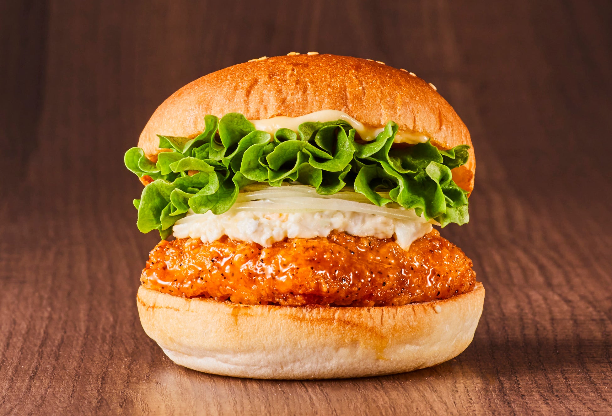 今回、新たに九州産“華味鳥”のムネ肉を使用した「チキン南蛮バーガー」「チキンデミカツバーガー」、