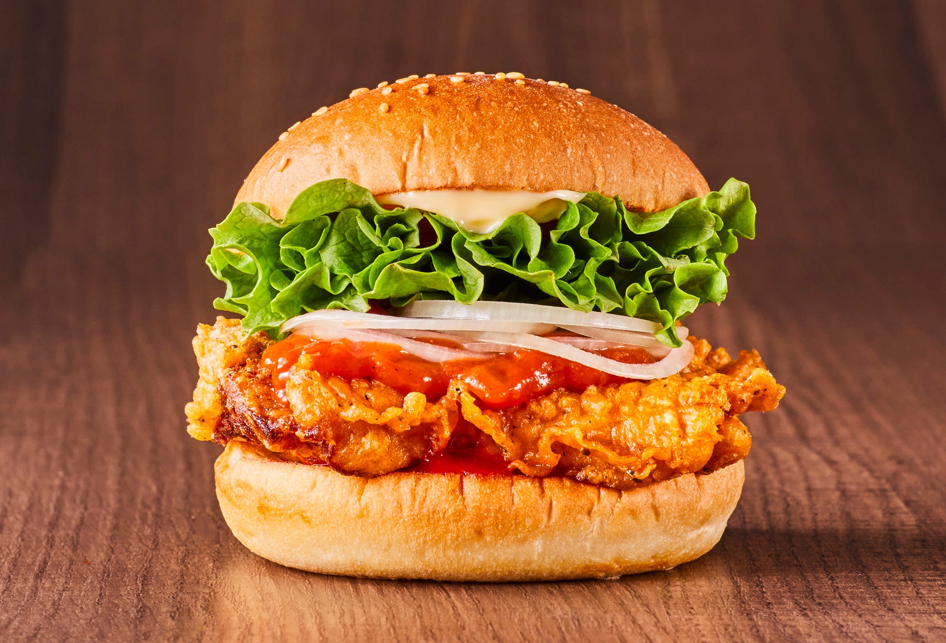 既存のモモ肉を使用した「ホットチリチキンバーガー」の新商品3種類を追加し、5種類にて展開。