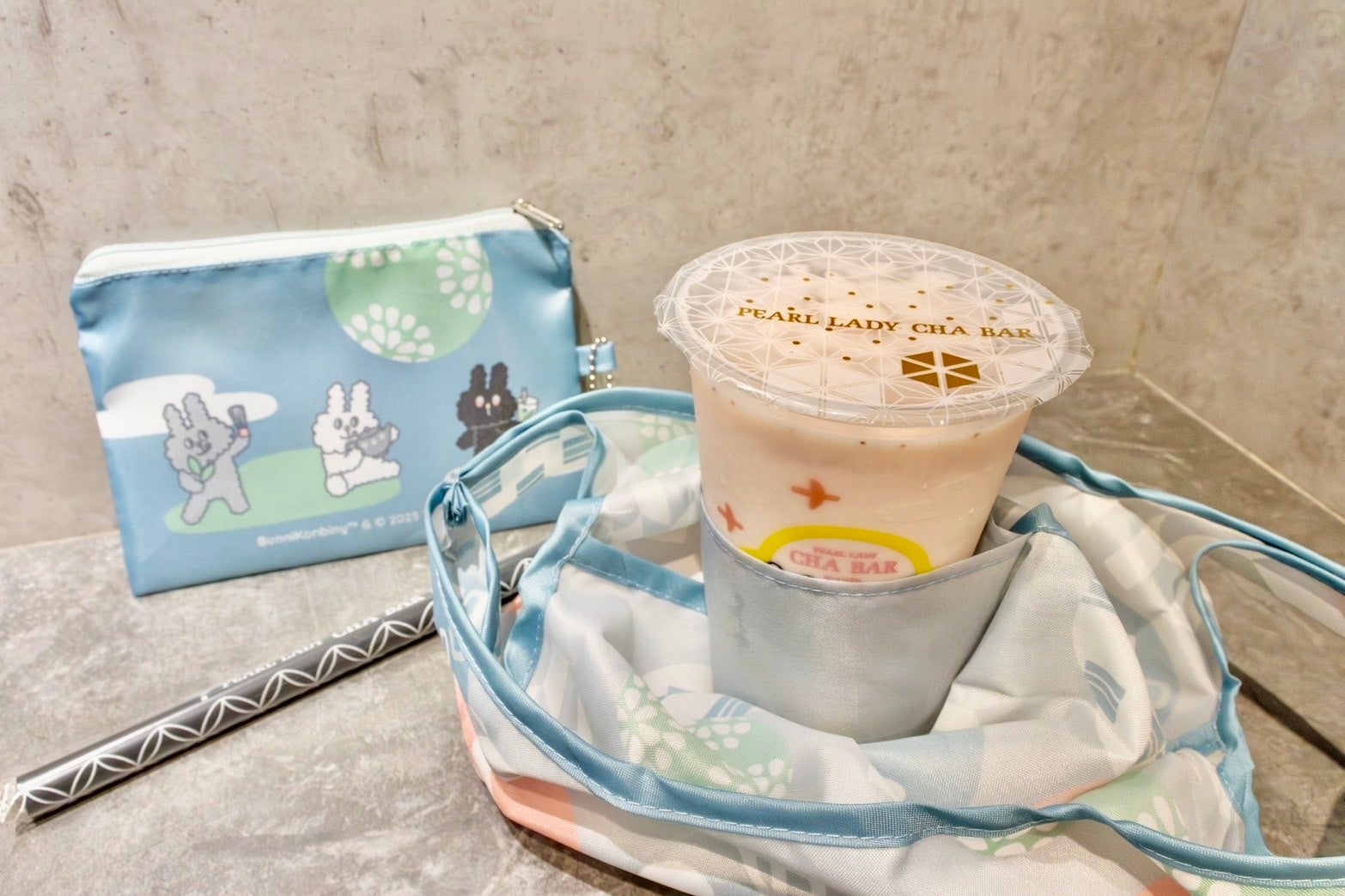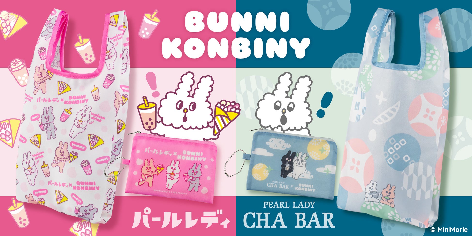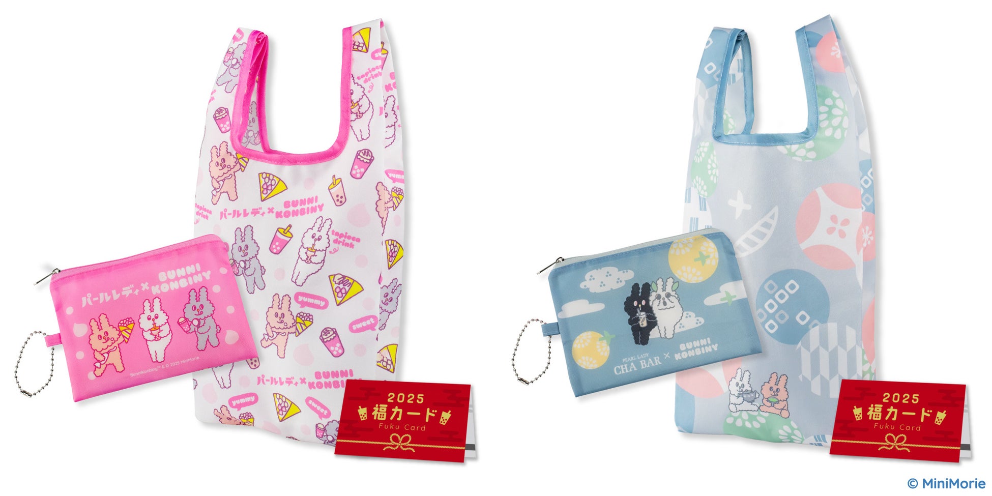 2025年のパールレディ・CHABARの福袋は「BUNNI KONBINY(バニーコンビニ)」とタイアップしたオリジナル柄のドリンクバッグとポーチ、クーポンの3点セット