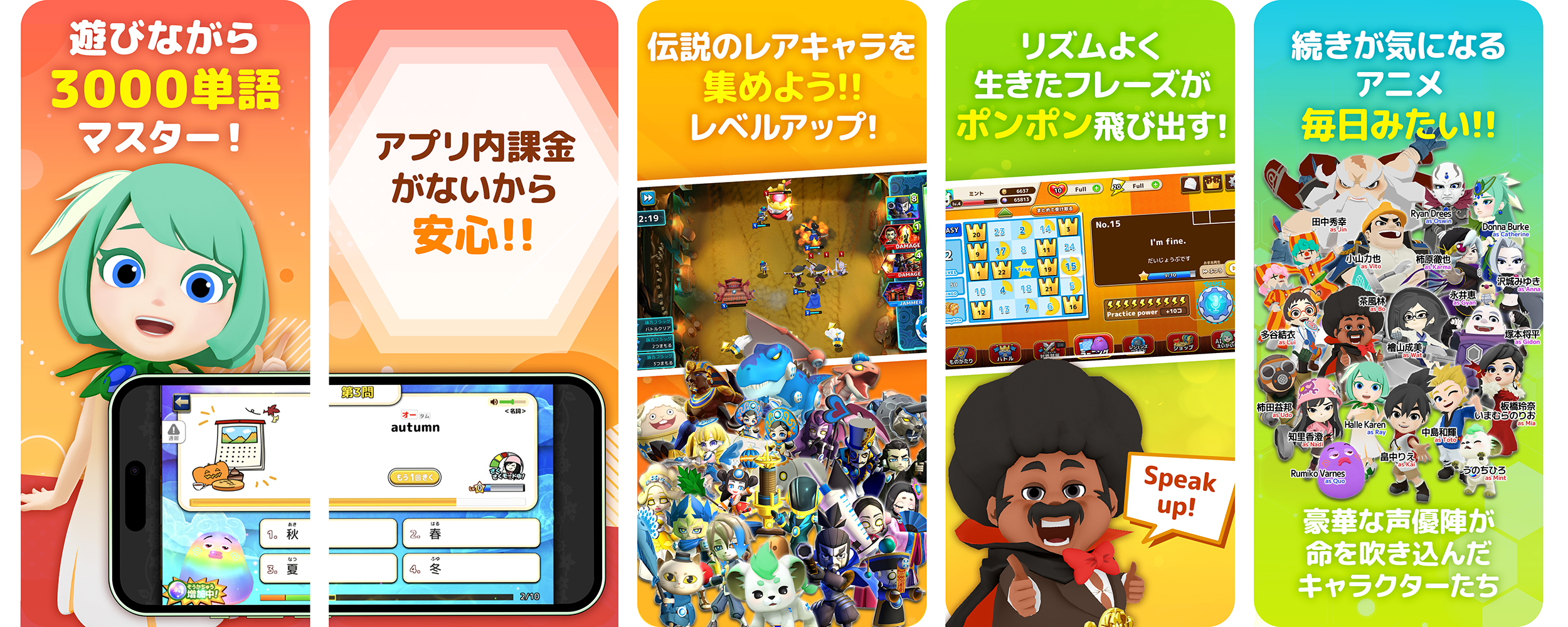 アニメやゲームやクイズを遊んでいるだけで、自然と英語が上達するファンラーニング型・AI英語アプリです。3,000超の高校卒業レベル・英検2級レベルの英単語、1800超の中学卒業レベルの文型・フレーズが学べて、英検対策アプリとしても、AIキャラクターとの英会話練習アプリとしても、課金なしに無料で利用し続ける事ができます。