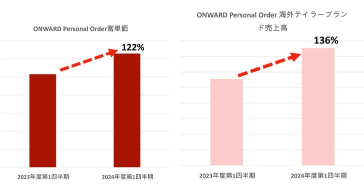 百貨店での展開を中心とし、高価格帯スーツを展開する「ONWARD PERSONAL ORDER」は、外商との取り組み強化により富裕層顧客に成功し、客単価が2023年度比122%を達成。また海外テイラーブランド商品の売上が2023年度比136%と伸長し、25万円以上の高額商品の売上構成比が昨年度の35%から40%まで拡大しました。上記により、富裕層を中心に高品質なスーツを求める傾向が拡大していることが伺えます。