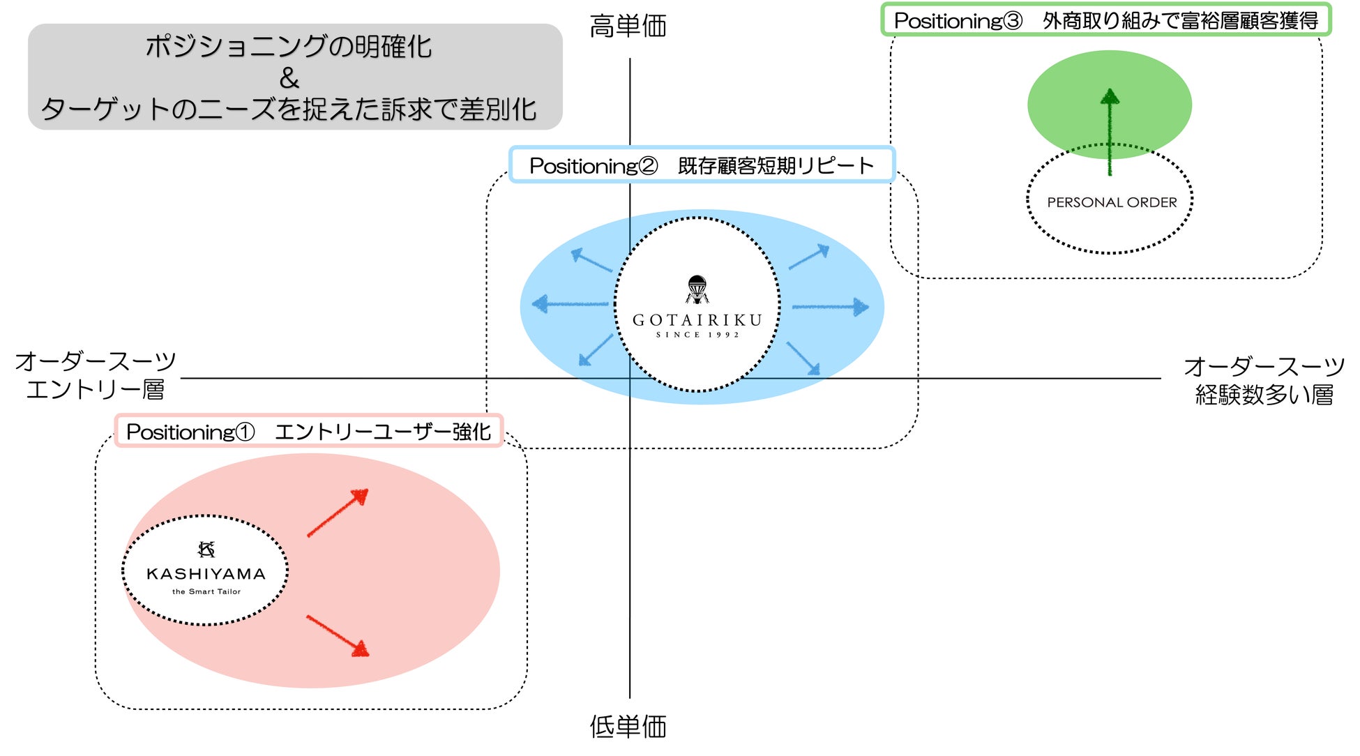 オーダースーツのKASHIYAMA 新規客獲得数 昨年度対比167%オフィスウェアの多様化が進む中、世の中のトレンドを捉えブランドごとの強みとポジションを明確化し、売上拡大に成功。