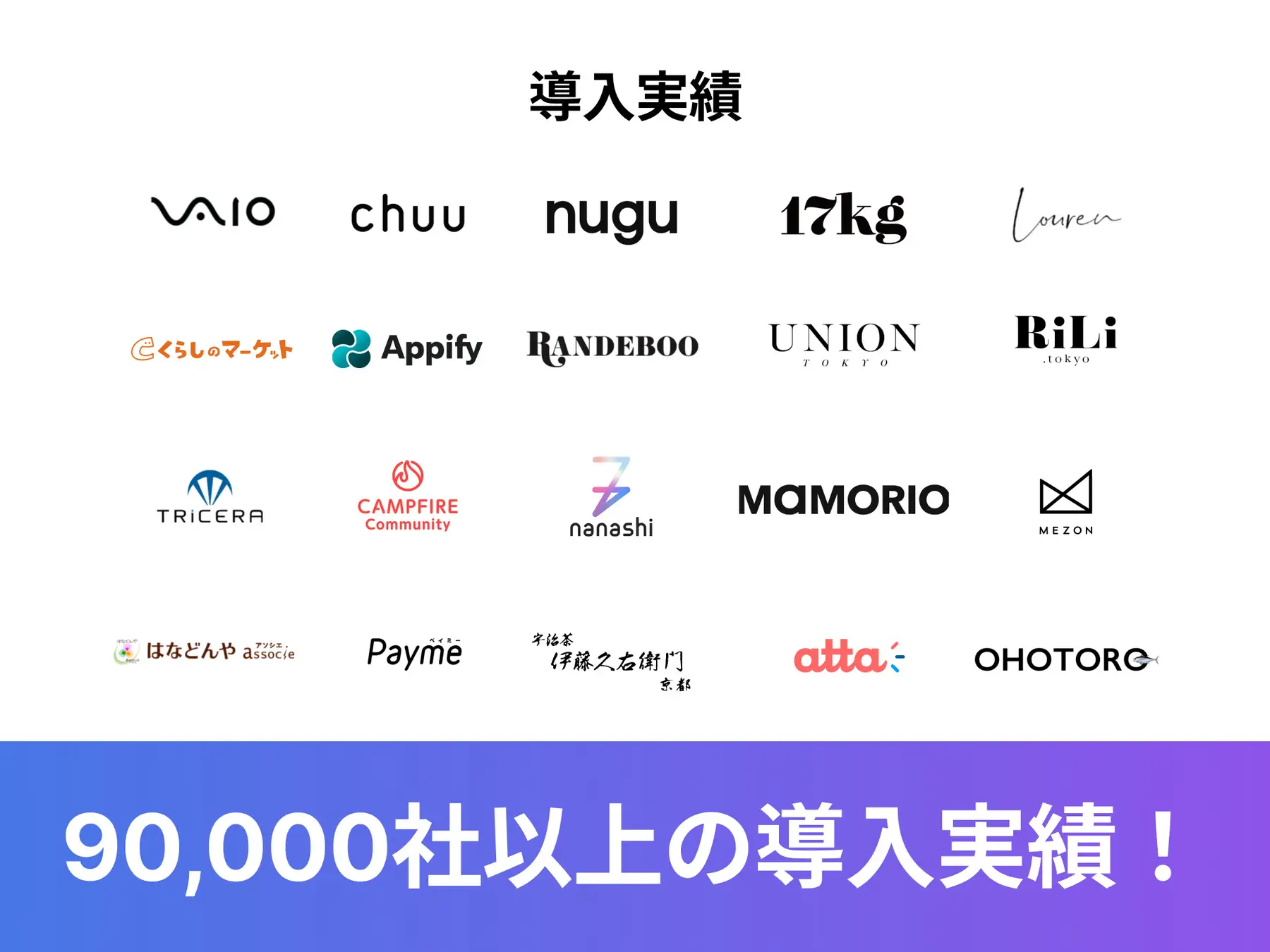 チャネルトークは「ビジネスの”持続可能な成長”をサポート」することをミッションに、その成長の原動力である「顧客」とビジネスをつなぐ「熱狂的ファンを作る接客チャット」です。現在、ECを中心に90,000サイトに導入されています。従来の受動的に顧客の問題を解決するカスタマーサポートにとどまらず、より積極的に顧客体験向上や接客、顧客管理(CRM)、ブランディング、ファン作りを行うカスタマーサクセスとしても活用できます。