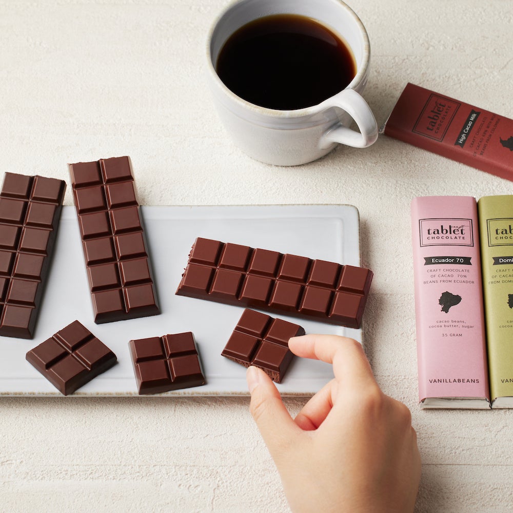 会場では、横浜の工房で1枚1枚丁寧に仕上げたクラフトチョコレートの「タブレットショコラ」を28種類販売します。過去にICA(インターナショナル・チョコレート・アワード)を受賞したフレーバー「ハイカカオミルク」や、VANILLABEANSがカカオの植樹や栽培支援をおこなっているエクアドル共和国のアリバカカオ種を使った「エクアドル70」などのシングルオリジンもご用意。