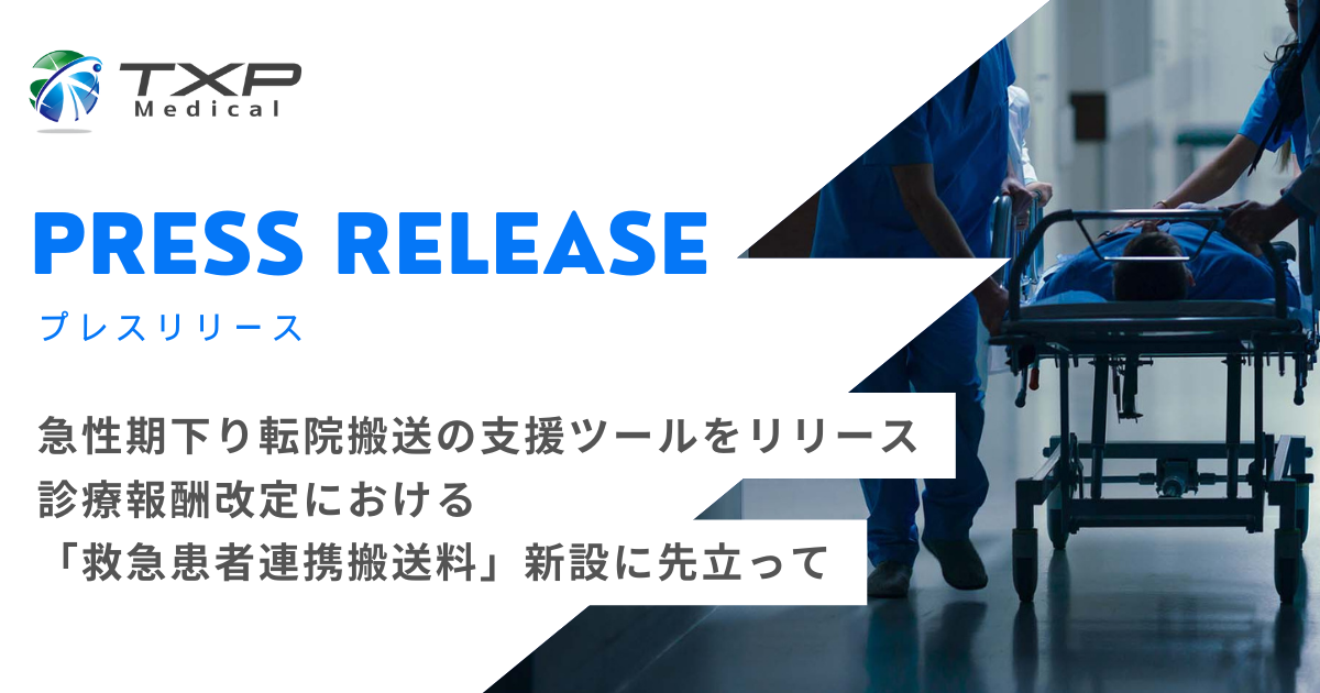 急性期下り転院搬送の支援ツール~診療報酬改定における「救急患者連携搬送料」新設に先立って~TXP Medicalが新リリース