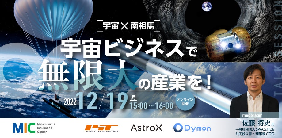 南相馬市産業創造センター(MIC)(所在地:福島県南相馬市)は、宇宙関連有望スタートアップによる資金調達や協賛企業とのマッチングを目的としたピッチイベント「宇宙ビジネスで無限大の産業を!」を12月19日(月)15時より開催いたします。