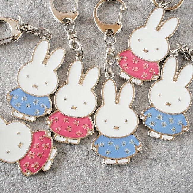レースフラワーという小さなお花を“押し花”にし、ミッフィーのお洋服にコラージュ。ちょっと首をかしげたミッフィーのシルエットにもご注目ください。鍵やバッグに付ければ、いつもミッフィーと一緒。