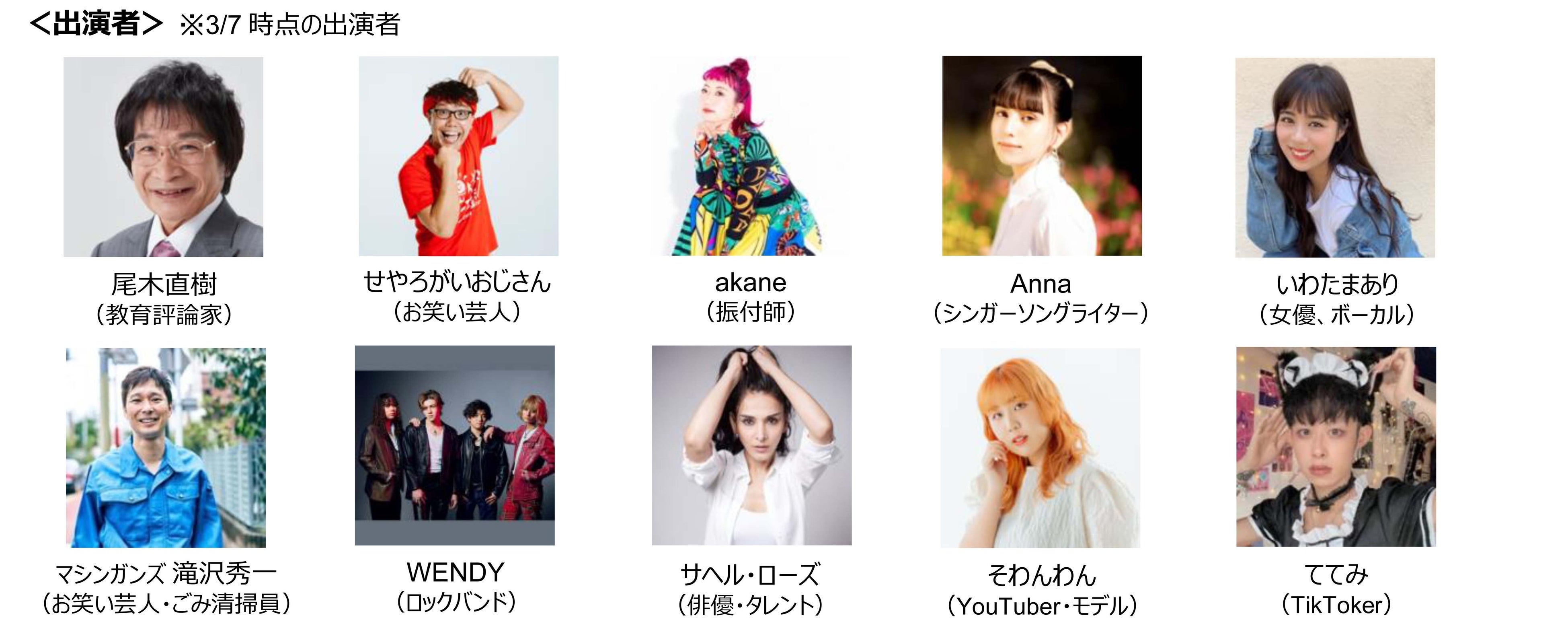 今回、スペシャルアンバサダーに土屋アンナさん、すみれさん、世良マリカさんらを迎え、世界から注目を集めるイリュージョニスト HARA さんの煌びやかなオープニングからスタート。アクションを起こした子どもたちや活動家たちのスピーチの合間には、日本を代表する振付師 akane さんのダンス、若者に人気のミュージシャンライブやタレント・モデルのトークショーなど、音楽やDJ、お笑い、チアダンス、プラネタリウムまで、さまざまなジャンルのパフォーマンスを融合させた約 4 時間にわたる熱いライブステージが繰り広げられます。