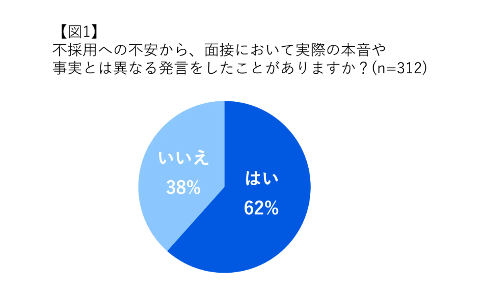 ワンキャリアが実施した調査(※1)によると、約6割の学生が、面接で「実際の本音や事実と異なる発言をしたことがある」と回答しています。