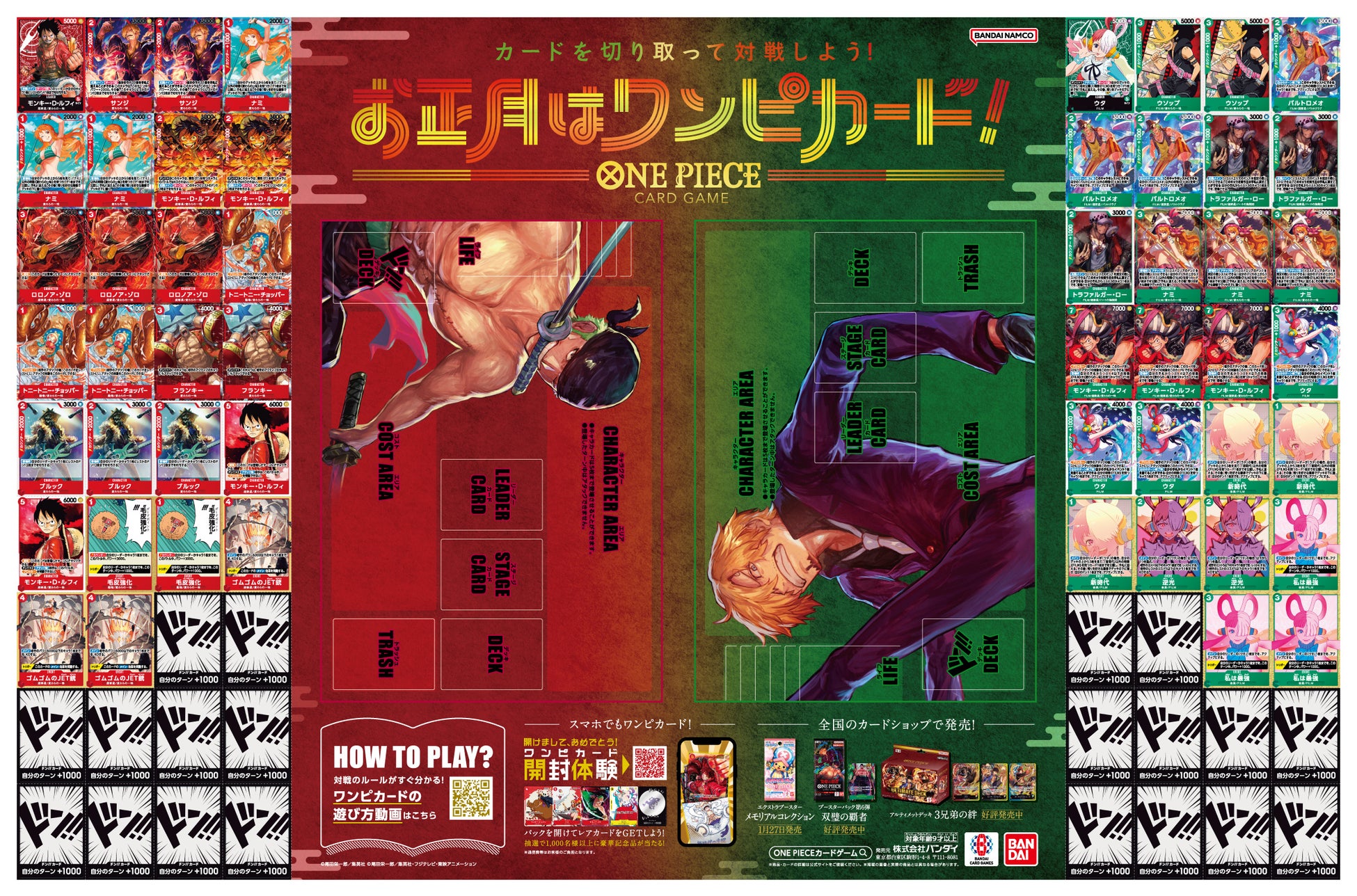 株式会社バンダイ カード事業部(本社:東京都台東区、代表取締役社長 竹中一博)は、『ONE PIECE』の世界観を体感できる本格トレーディングカードゲーム 「ONE PIECEカードゲーム」を、お正月を機により多くの方々に体験して楽しんでもらうことを目的とした特別企画「お正月はワンピカード!キャンペーン」を実施します。