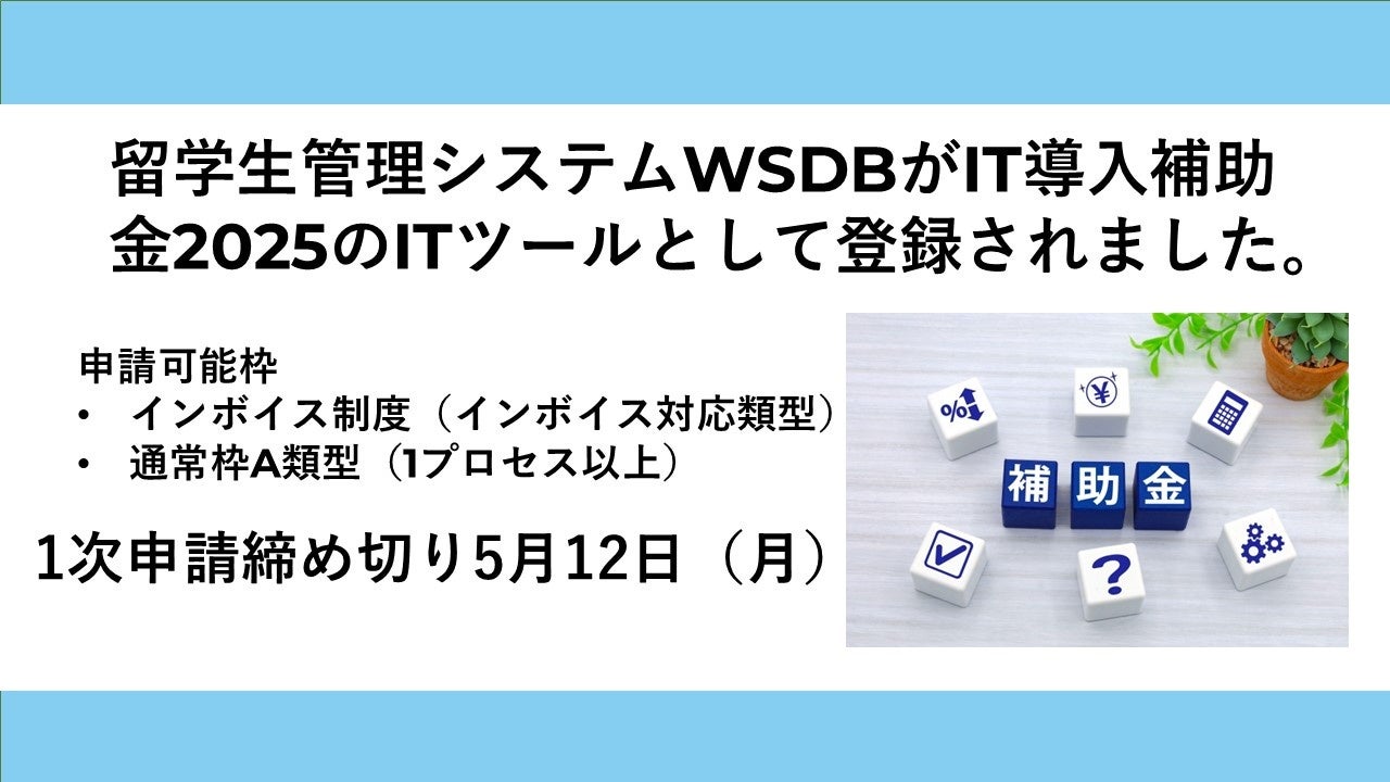 「留学生管理システムWSDB」がIT導入補助金2025の対象ツールに登録されました