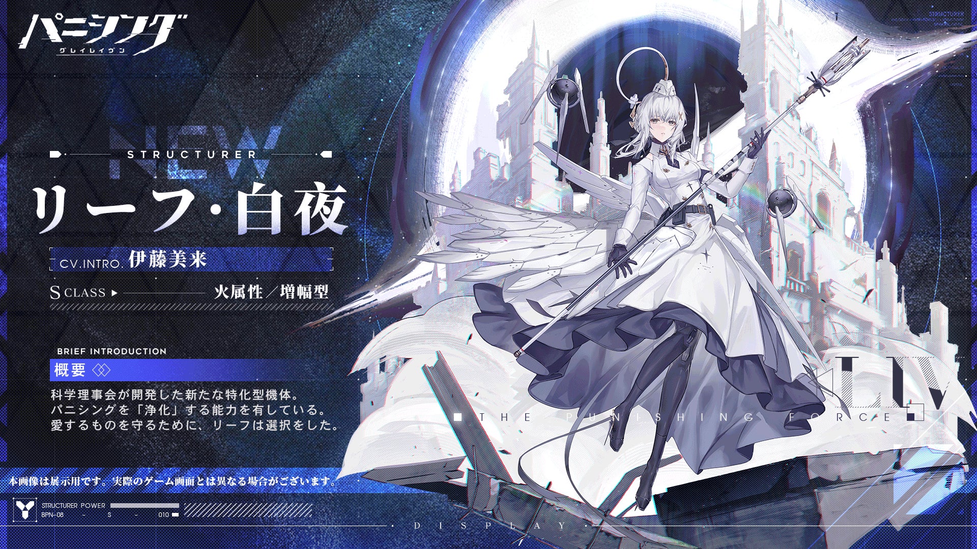 空中庭園が新たに開発したリーフの特化型機体「リーフ・白夜」をSクラス構造体として実装!自身や味方の性能を増強させる新しい型式「増幅型」を有する火属性のキャラクターです。また、新しい星6武器も併せて実装します。