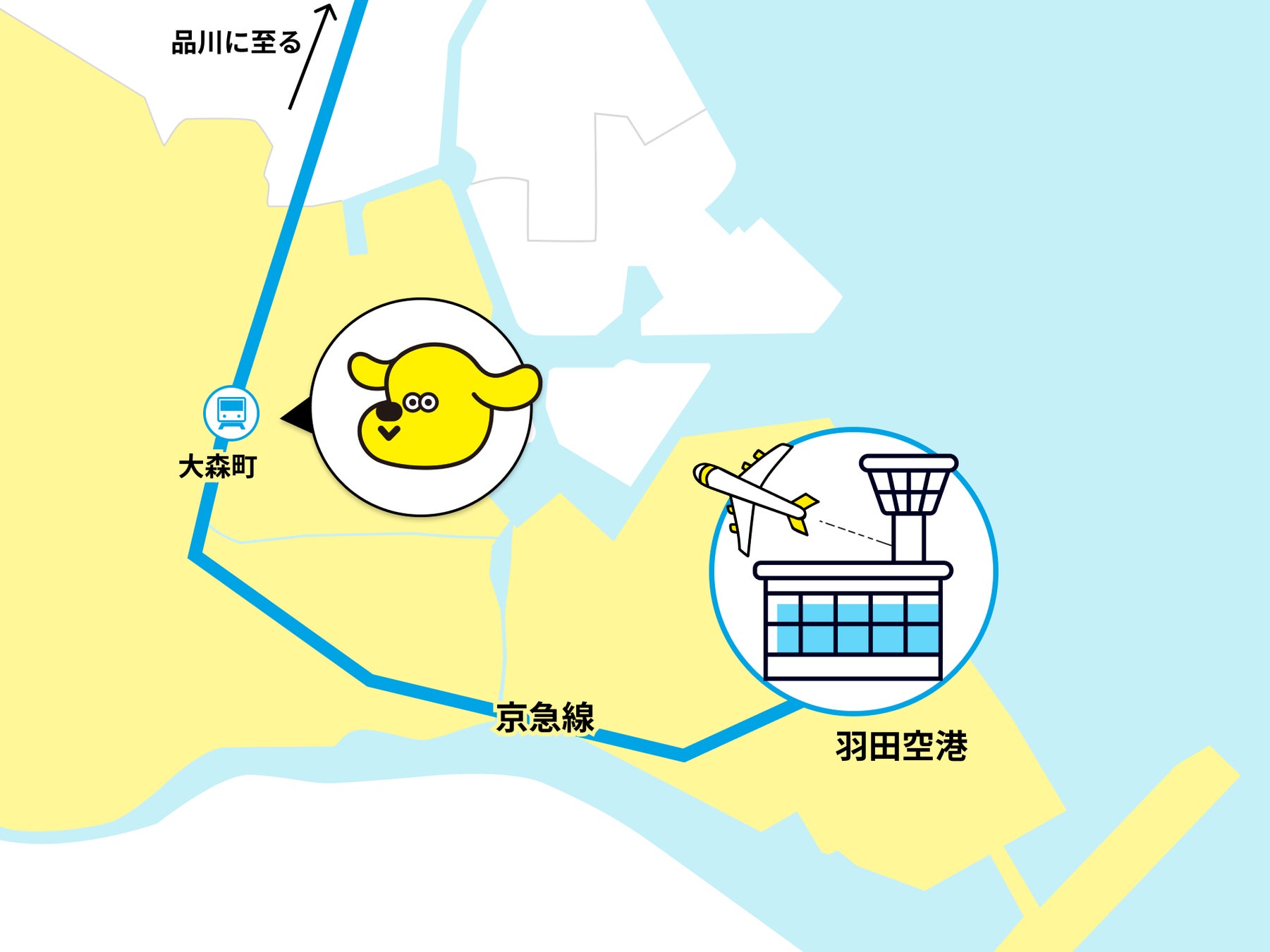 本物件は京浜急行電鉄京急本線「大森町」駅から徒歩1分の立地にあり、羽田空港へ公共交通機関利用で15分、品川駅まで10分と、アクセスの利便性に優れています。