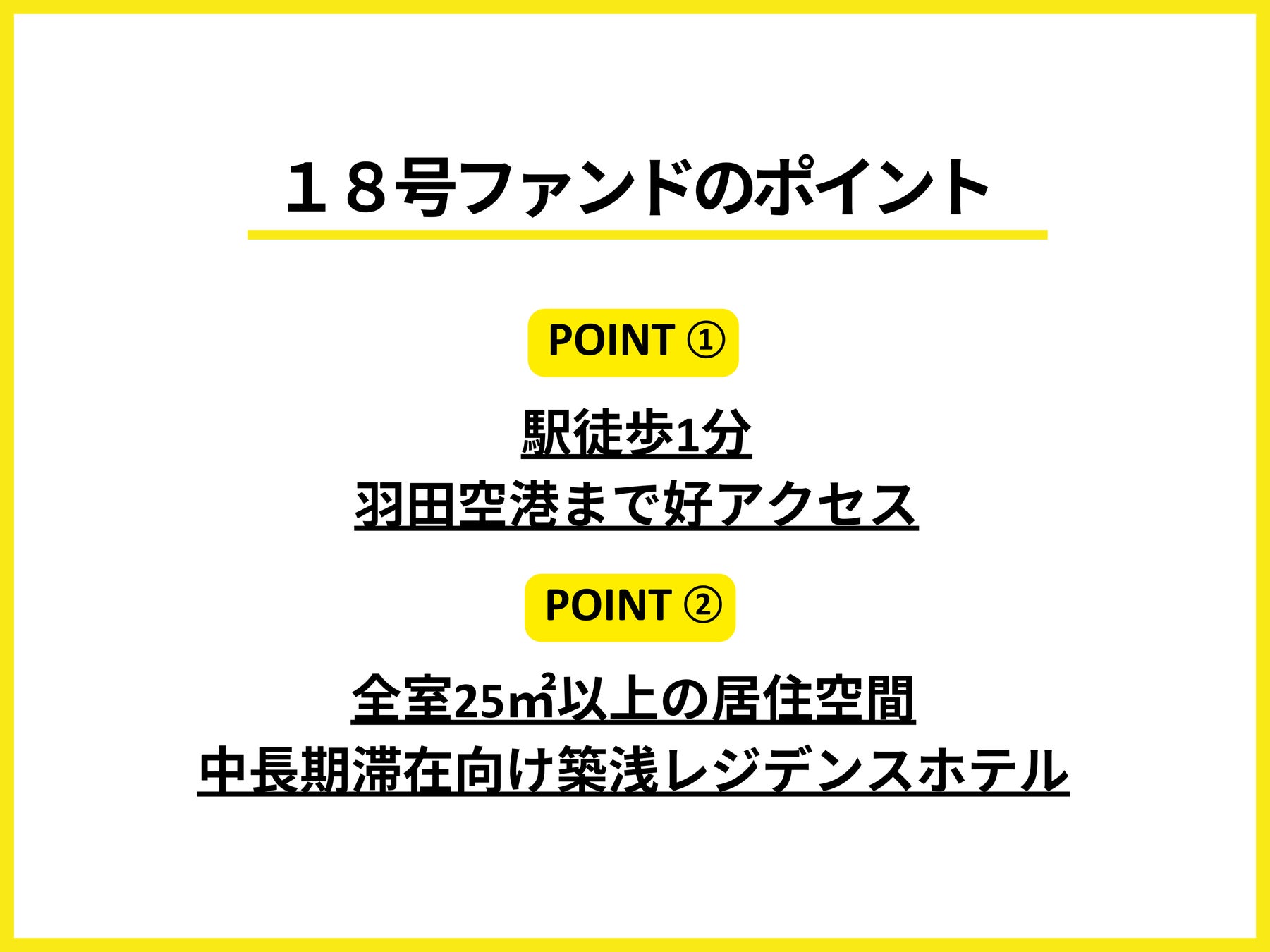 本物件は、羽田空港からのアクセスが良好で駅前に立地しており、さらに竣工間もない築浅のレジデンスホテルである点が特長です。