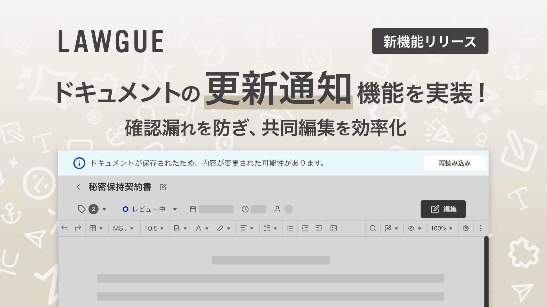 次世代AIクラウドエディタ「LAWGUE」、ドキュメントの更新通知機能を実装