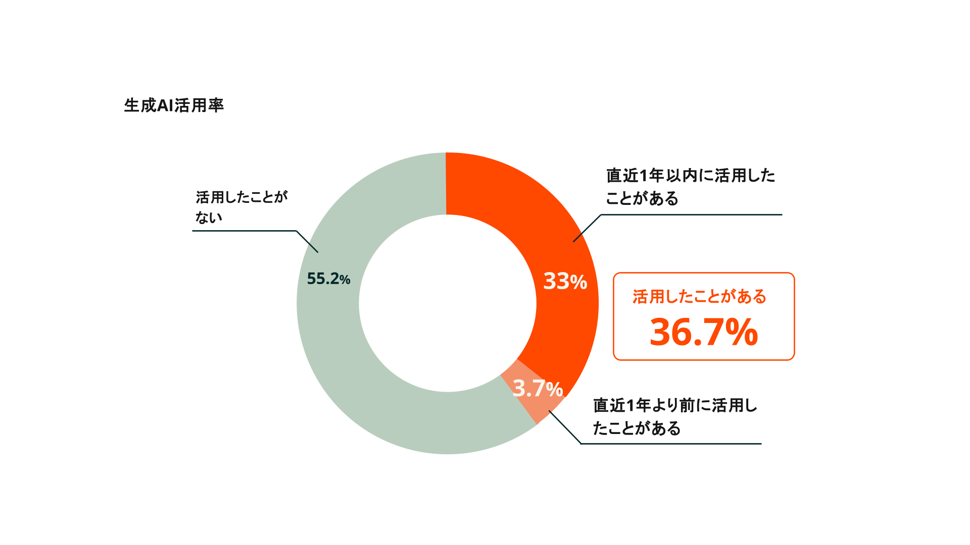 生成AIを活用する営業の45.1%が「高いリターン」を実感: 営業職の生成AI活用率はこの1年で28.9%から43.4%に拡大。有料版生成AIツールへの投資に対して45.1%が「高いリターンがある」と回答。生成AI活用により創出した時間を「個別化された提案」や「顧客との深い対話」に再投資できるかが鍵に。
