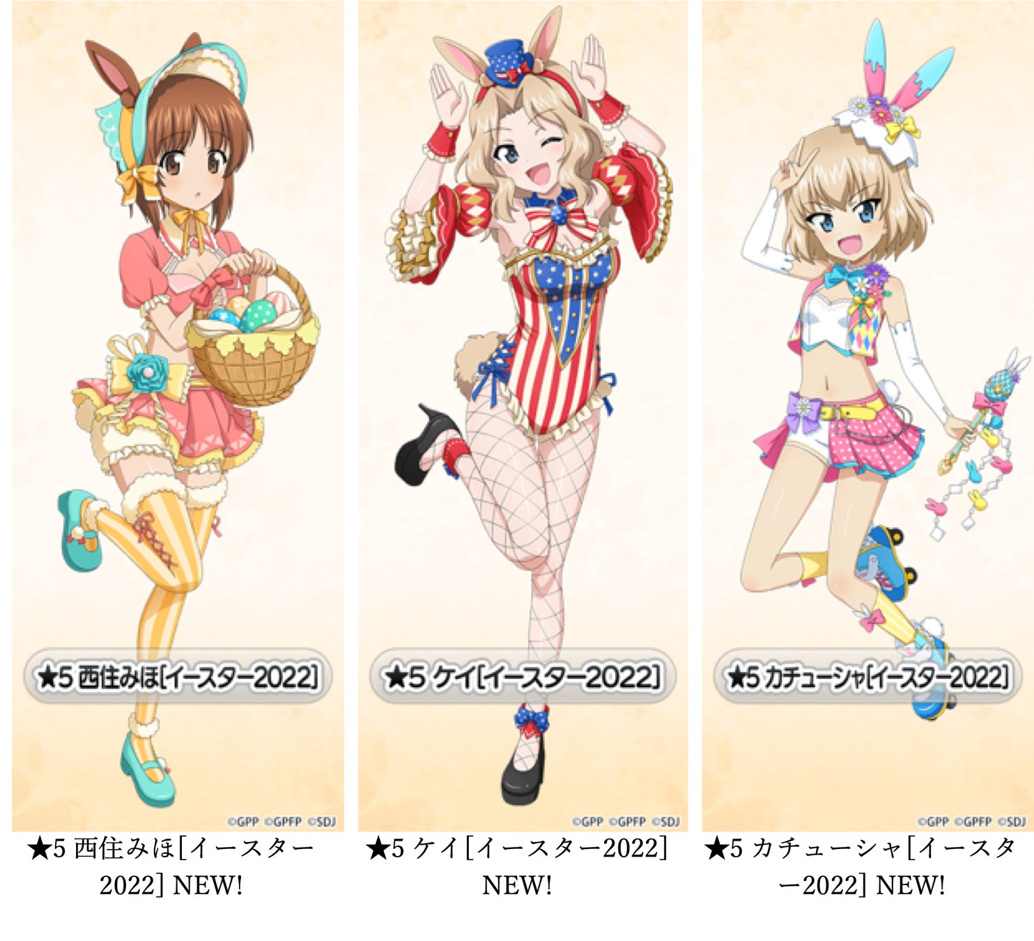 - ■イースター衣装の生徒が新登場!西住みほやケイなどが新規追加!