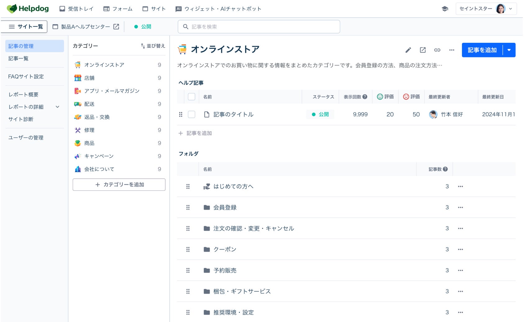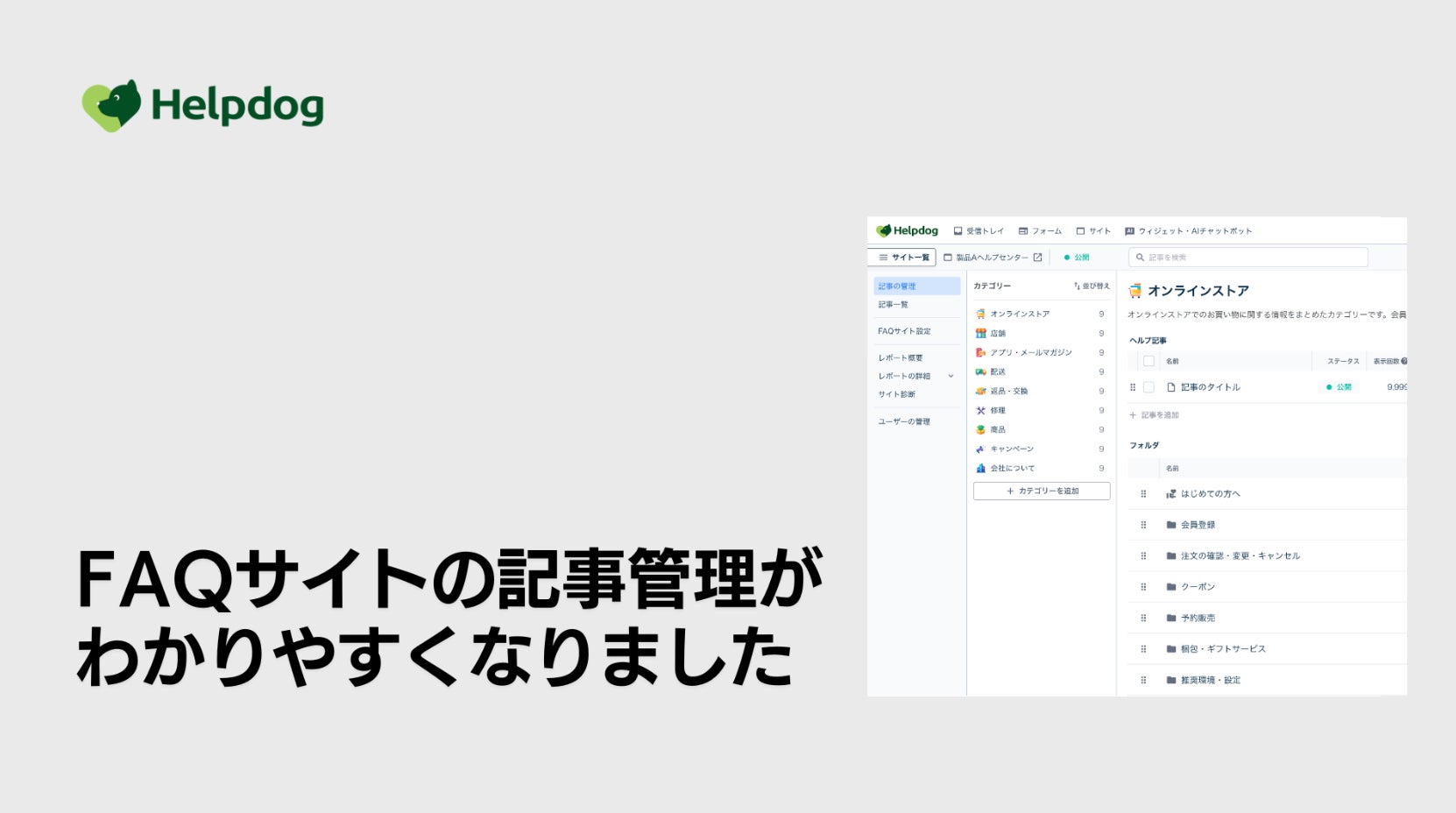 noco株式会社(本社:東京都中央区、代表取締役:堀辺 憲)は、このたび、AIサポートシステム「ヘルプドッグ」(https://helpdog.ai)において、FAQサイトにおける記事管理画面のユーザーインターフェース(UI)および機能のアップデートを開始しました。