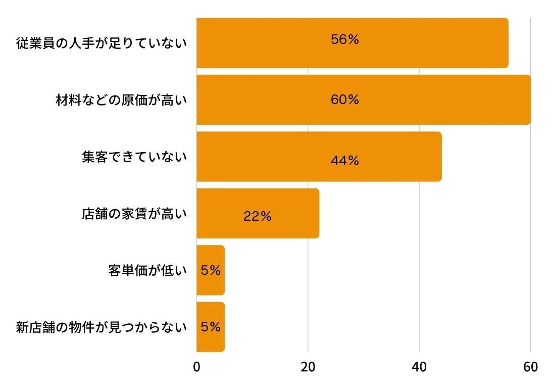 2: 現在、飲食店が困っていることは「原価の高さ」と「人手不足」