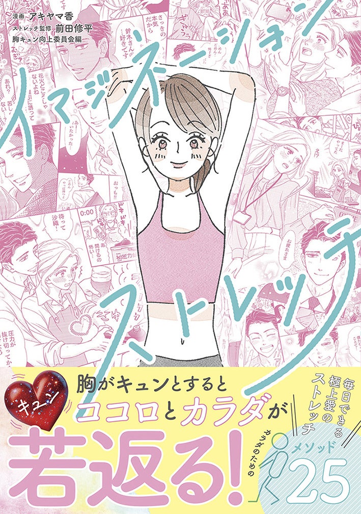 『イマジネーションストレッチ』は、運動をしたいとは思っているものの、行動に移せていないという方を後押しする本です。内容は25の胸キュンシーン(本編22シーン+コラム3シーン)とストレッチの解説。胸がときめくストーリーを楽しみながら効果的なストレッチに取り組むことで、運動習慣の入り口としてお役立ていただくものです。