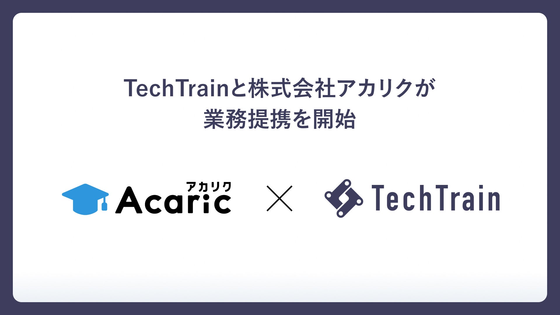 「テクノロジーを支える、全ての人のターミナルに。」を掲げるTechTrain(株式会社TechBowl 本社:東京都千代田区、代表取締役社長:小澤 政生、以下「TechTrain」)と、「知恵の流通の最適化」を理念とし、企業の大学院人材の採用支援および大学院生の就職・キャリア支援、研究・教育支援などのサービスを手がける株式会社アカリク(本社:東京都渋谷区、代表取締役社長:山田 諒、以下「アカリク」)は、業務提携契約を締結しました。この提携により、日本社会のエンジニア不足に対し、アカリクが持つ理系学生ネットワークと、当社が提供するプログラミング学習サービスを活かし、社会課題解決を促進してまいります。