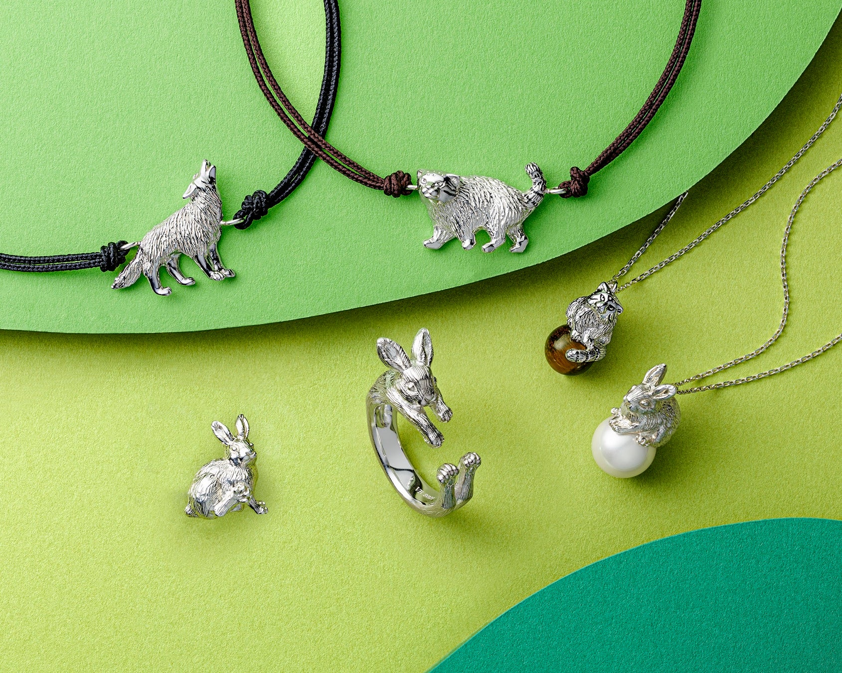 エゾユキウサギ リング¥18,700/エゾユキウサギ ペンダント¥25,300/マヌルネコ ペンダント¥18,700