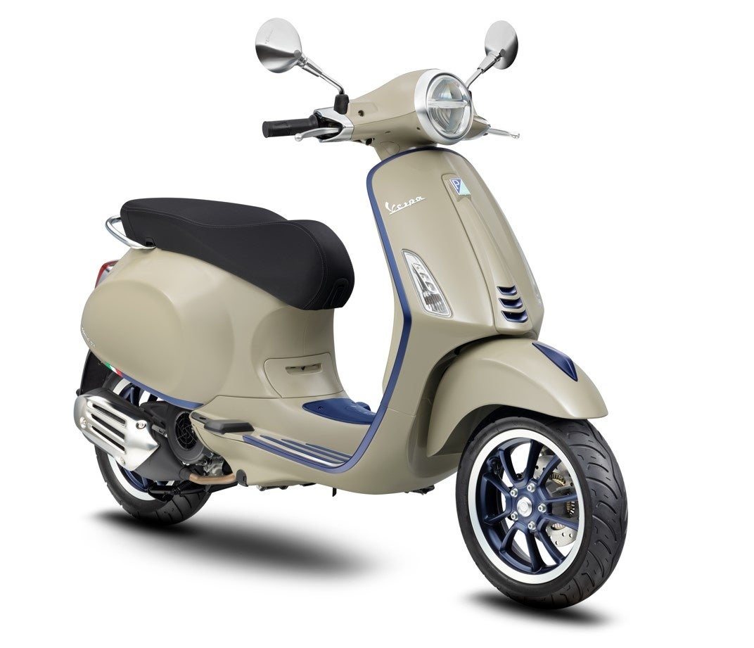 新しいベスパ プリマベーラSは、控えめなエレガンスと現代的な趣を表現しています。ベスパ プリマベーラSにのみ採用されているブルー際立つフェンダーオーナメント、ホイール、サイドラインステッカー、フットボードラバー、そしてボディトリムのエレメントが、新たな色合いを引き立ています。ベスパのスチールボディ側面には専用のイタリア国旗グラフィックを配し、アヴォルジェンテ ベージュ、エストロベルソ ブルー、イノチェンツァホワイトの3種類のボディカラーを取り揃えています。