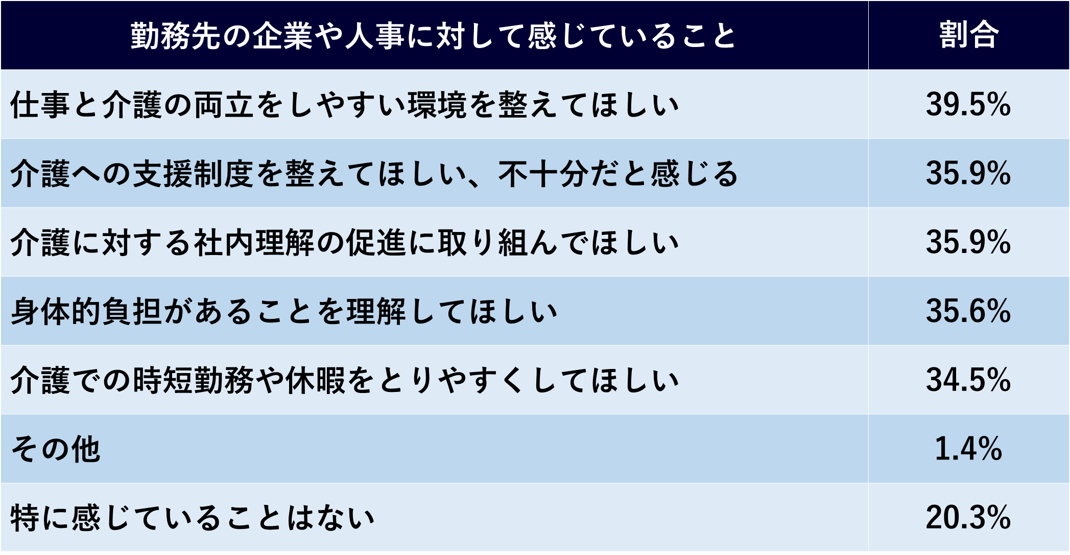 - ビジネスケアラーの8割が、仕事と介護の両立について会社や人事に不満・要望あり 最も会社や人事に望むこと「両立しやすい環境を整えてほしい」