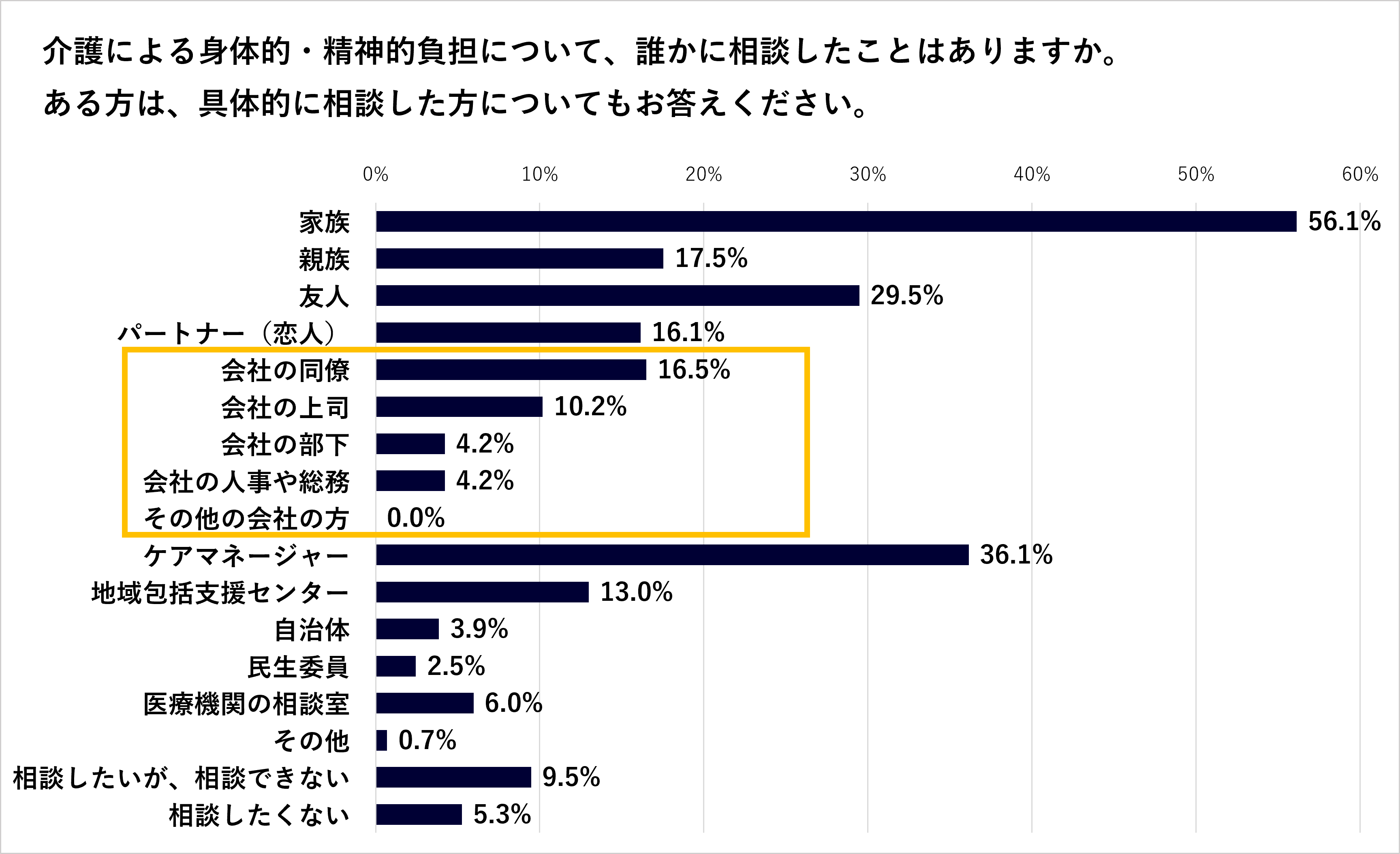 - 介護の精神的・身体的負担について会社の上司に相談しているのは1割にとどまる