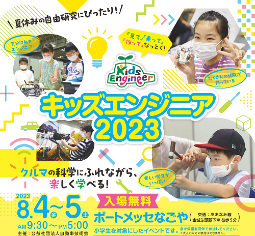 公益社団法人 自動車技術会(会長 大津 啓司)は、2023年8月4日(金)~5日(土)の2日間にわたり、ポートメッセなごやにて、キッズエンジニア2023を開催します。