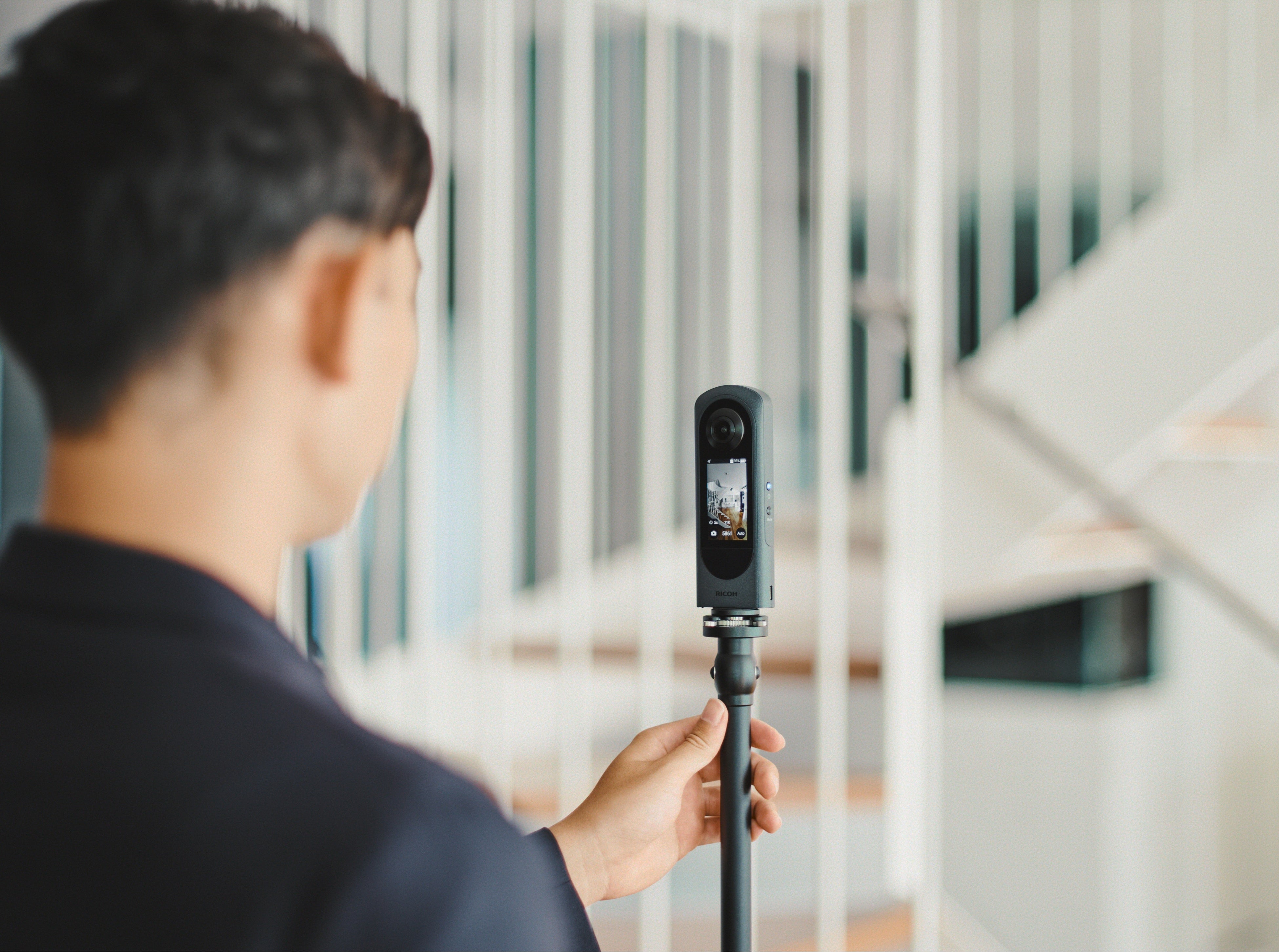 リコーは、2013 年に世界初*1の全天球カメラとしてRICOH THETAを発売し、写真・映像表現の可能性を広げるツールとして、さまざまな分野で利用されています。さらにハードウェアだけでなく「RICOH360 Tours/Projects」といった関連クラウドサービスを提供し、360°の画像・映像の取得から保存・共有までをワンストップで実現するとともに、AIによるコンテンツ生成など360°カメラに関連するさまざまな技術・ノウハウを培ってきました。