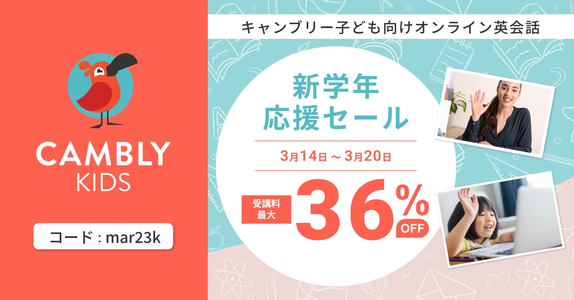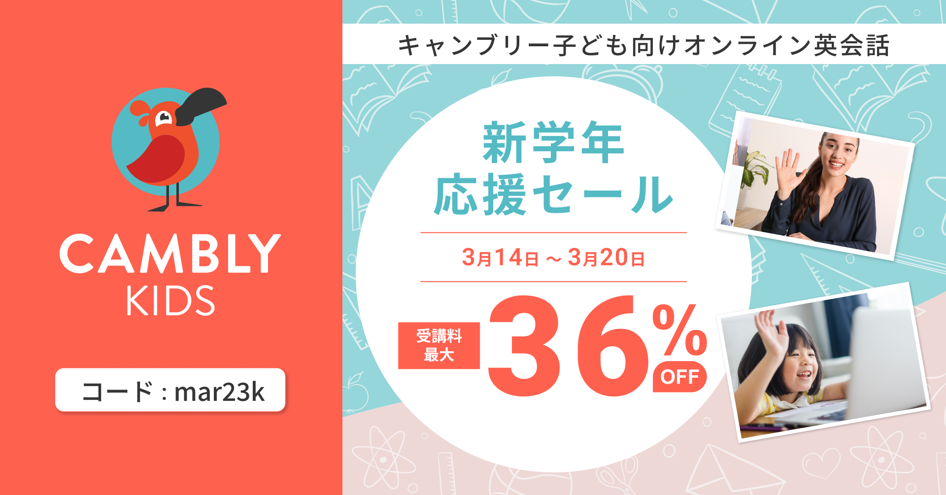 最大36%オフ!新学年応援セール開催【子ども向けオンライン英会話CAMBLY KIDS(キャンブリーキッズ)】