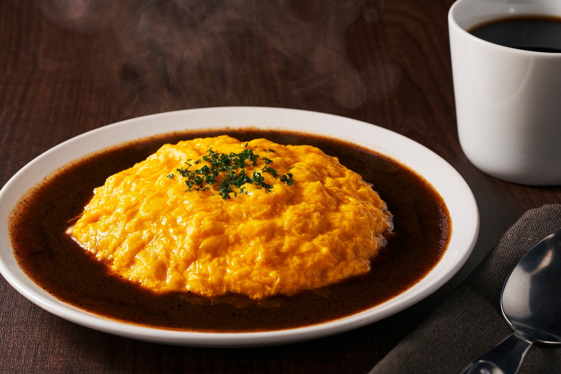 ソイミートやコーンにスパイスをきかせた味わい深いケチャップライスに、ふわとろのプラントベースエッグをのせ、じっくり炒めた玉ねぎと赤ワイン、豆乳バターが決め手のコクのあるプラントベースデミグラスソースをかけた驚きの一皿です。