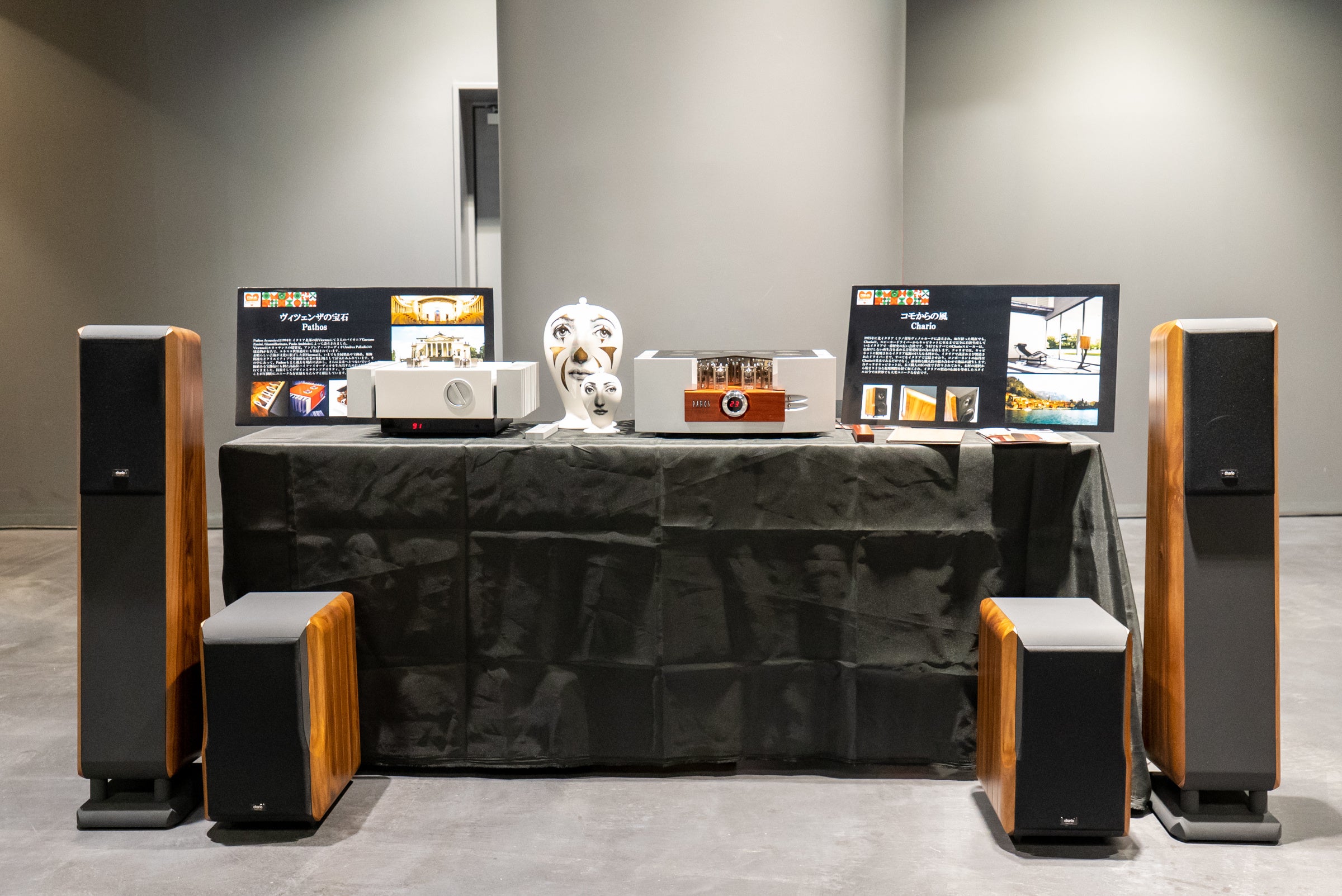 そのほか、様々なイタリアのブランド商品をご購入できるブティックも設置しました。ここでしか買えない貴重なイタリア産の商品をご購入いただくことができました。また、質の高い音楽環境があるライフスタイルを提供するオーディオ輸入商社『タイムロード』参加決定。北イタリアの老舗ブランドオーディオブランド『Chario』や熟練の職人がハンドメイドでビルドアップしたオーディオアンプ『Pathos』も展示しました。心に響く美しい音色で会場の雰囲気をよりイタリアらしくお洒落に演出していました。