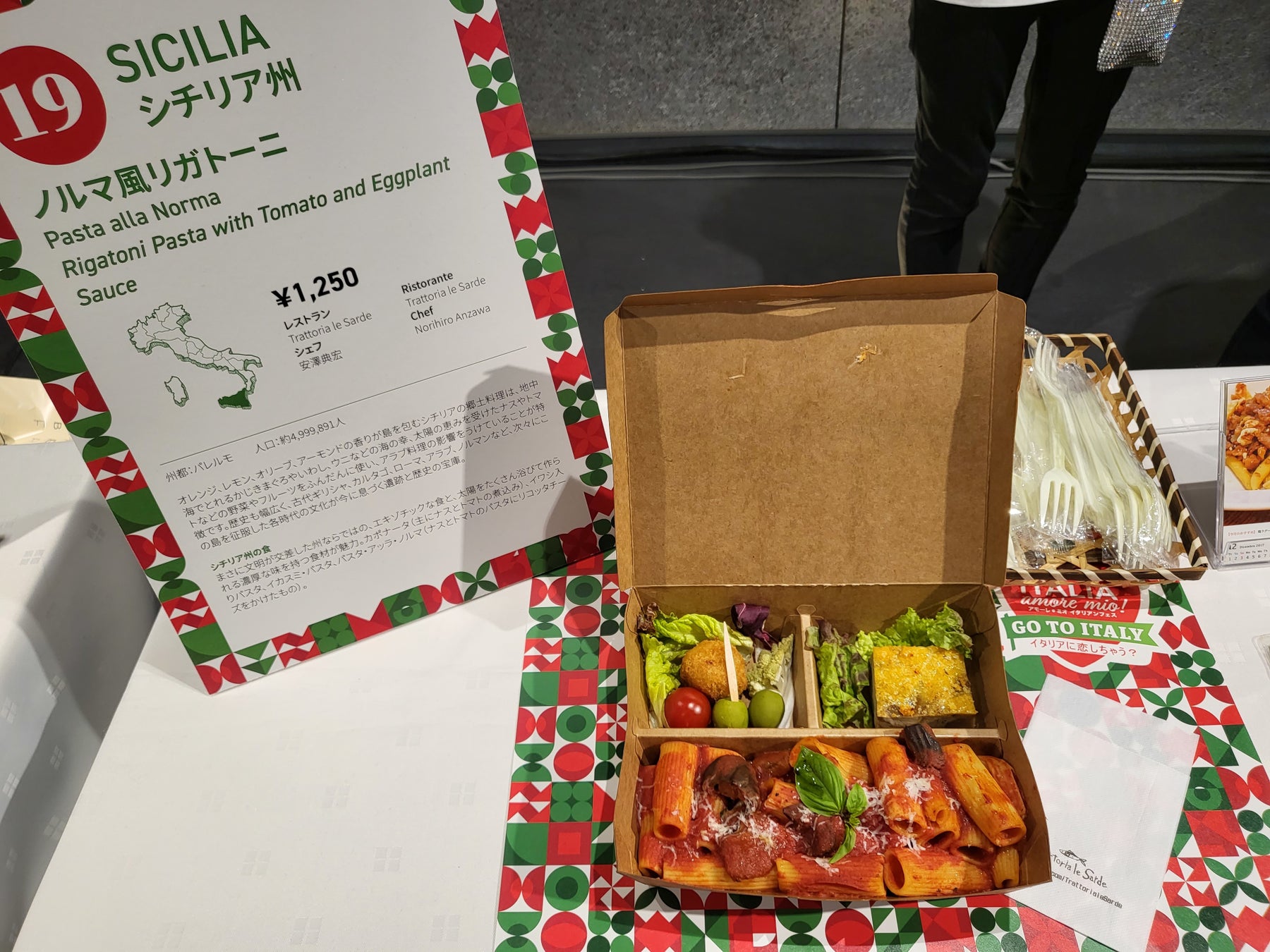 渋谷ストリーム ホール 4Fには、Italia, amore mio!(イタリア、アモーレ・ミオ!)のイベントの目玉であるグルメギャラリーを実施しました。在日イタリア商工会議所のA.Q.I.(※AQI=正式名称(Adesivo di Qualità Italiana)とは在日イタリア商工会議所が認定している。イタリア料理の伝統的なレシピを遵守し、イタリアの文化とホスピタリティーをお客様にお伝えいるレストランのこと)。A.Q.I.認定レストランより選りすぐりのトップ20のレストランが参加。イタリアンのトップシェフたちがイタリア全土20州の郷土料理をテーマに作ったイタリアスタイルのOBENTO(お弁当)を販売しました。北はヴァッレ・ダオスタ州から南はシチリア州まで。このイベントでしか体験できないイタリアの味覚の旅行を体感することができました。