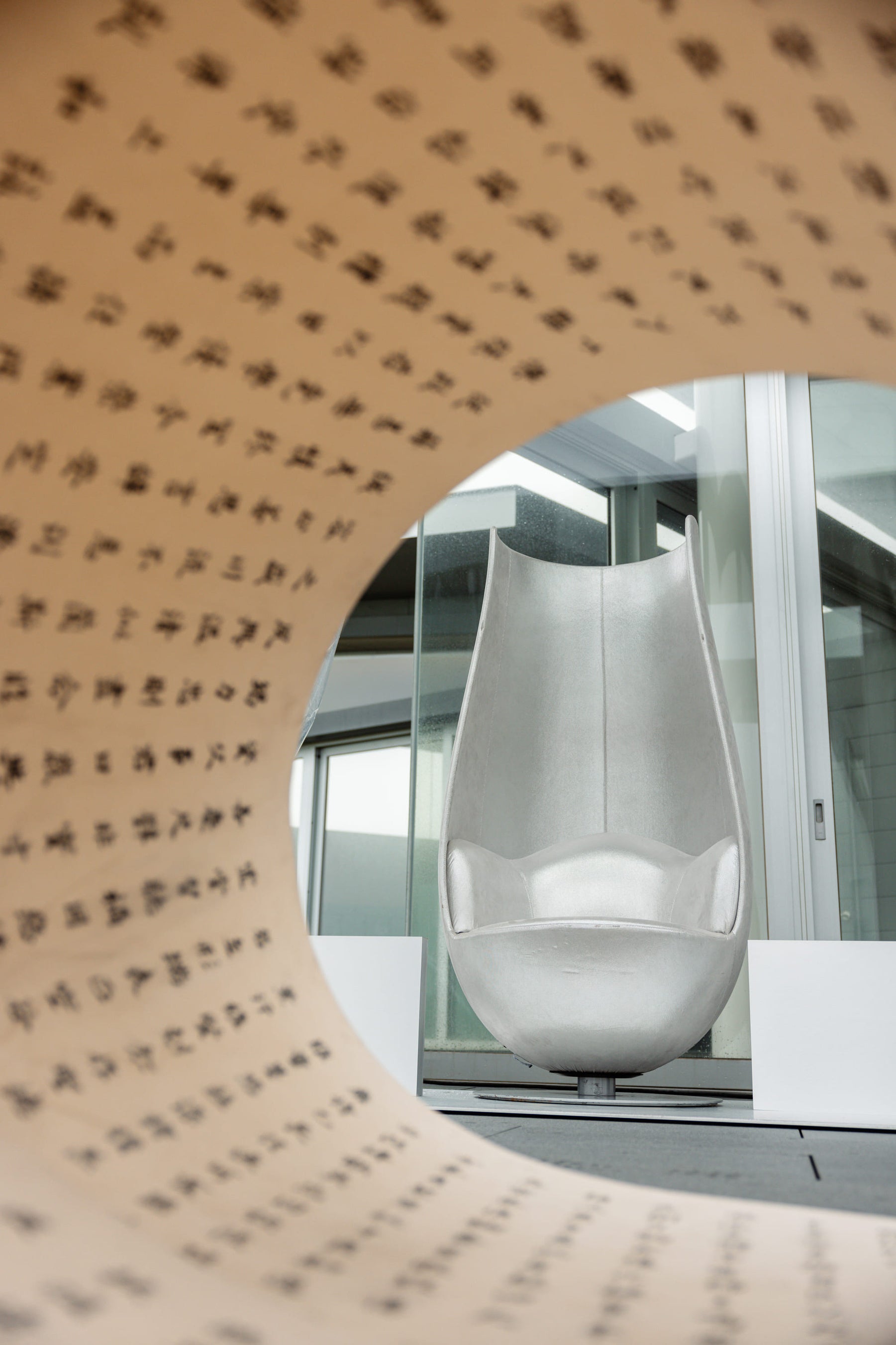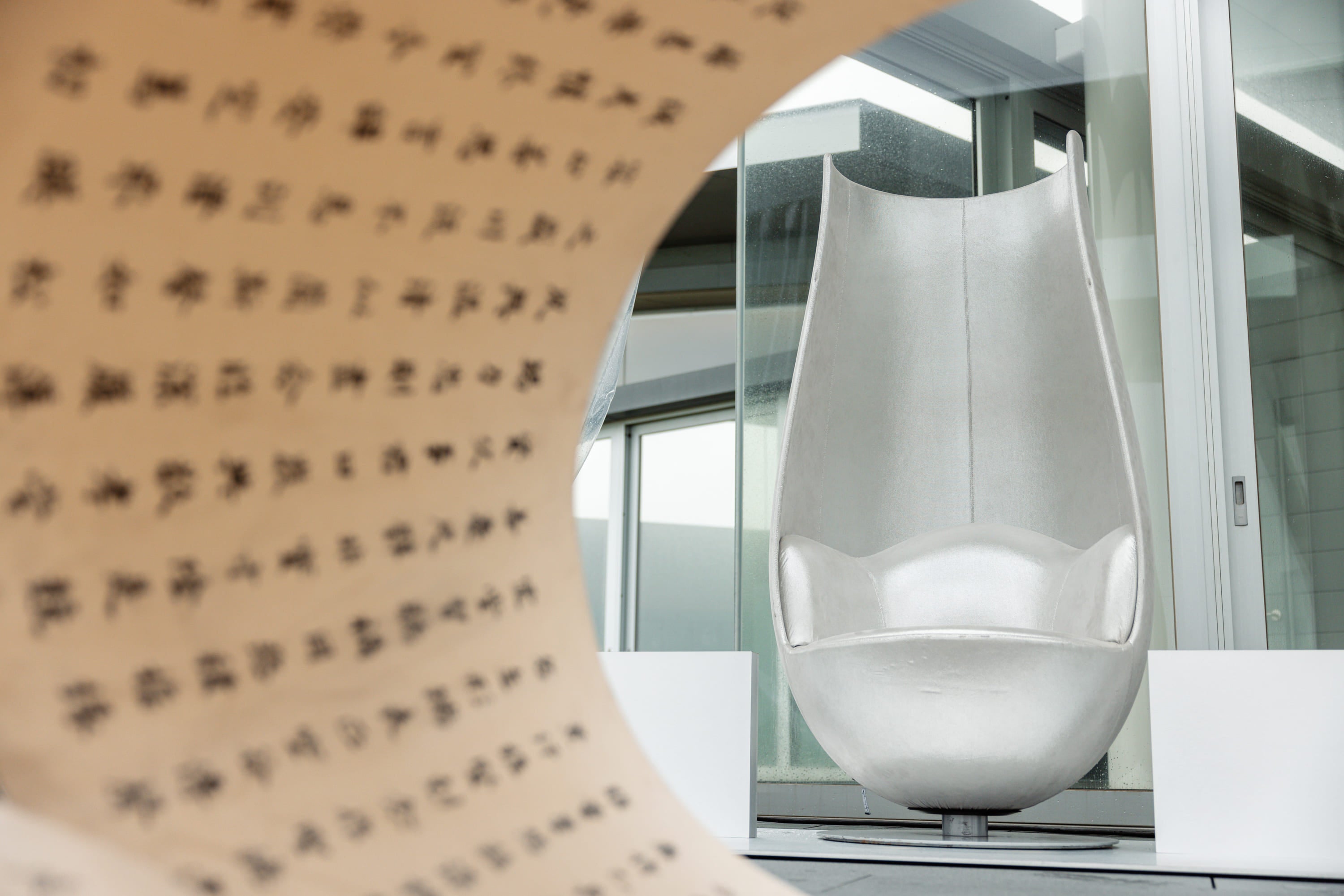 「LE ICONE」と銘打たれたALCANTARA®のインスタレーションスペースでは、オランダ生まれのプロダクト&インテリアデザイナー、Marcel Wanders(マーセル・ワンダーズ)が今回特別にデザインしたチューリップアームチェアや、中国人アーティストQui Lei Lei (クイ・レイ・レイ)によるアート作品「Signs, Symbols and Scripts」などの作品のほか、Y’sやLanvin、GCDSなどのファッションブランドとのコラボレーションによる作品、Microsoft社のSurfaceといった電子テクノロジー機器にALCANTARA®が採用された製品も展示されました。