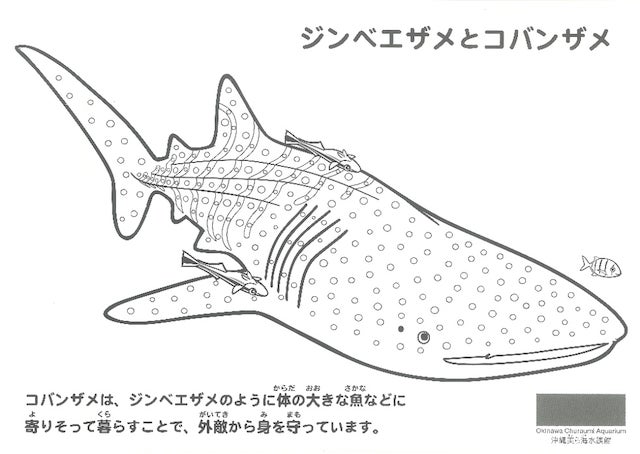 沖縄美ら島財団特設ブースにて、お子様向けにジンベエザメとコバンザメのぬり絵体験企画を予定しております。