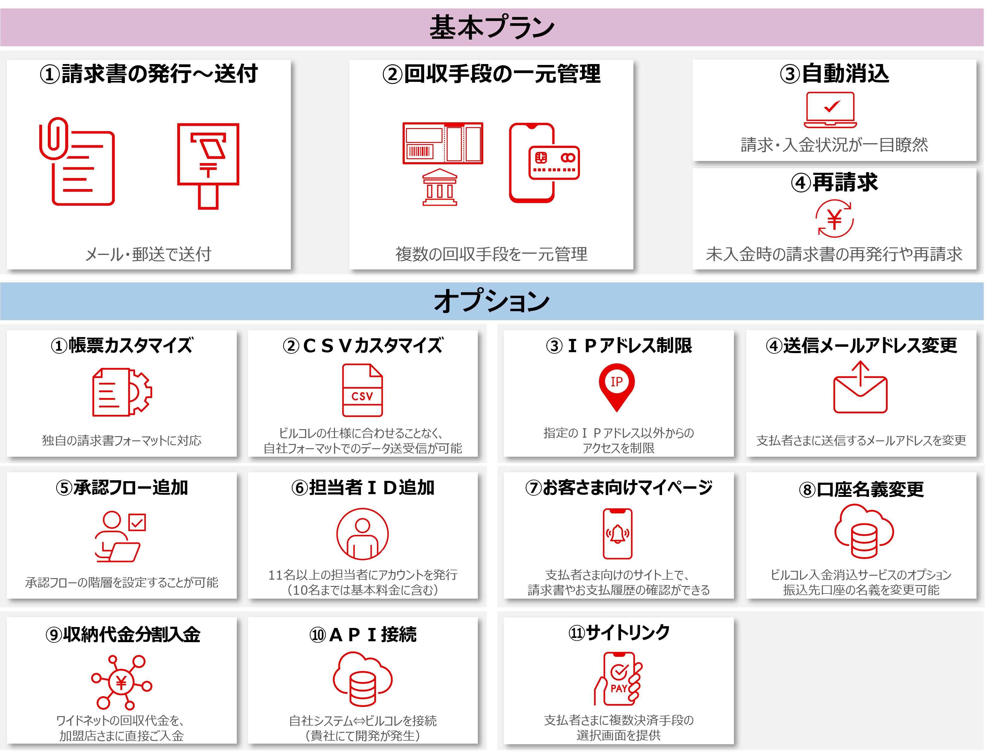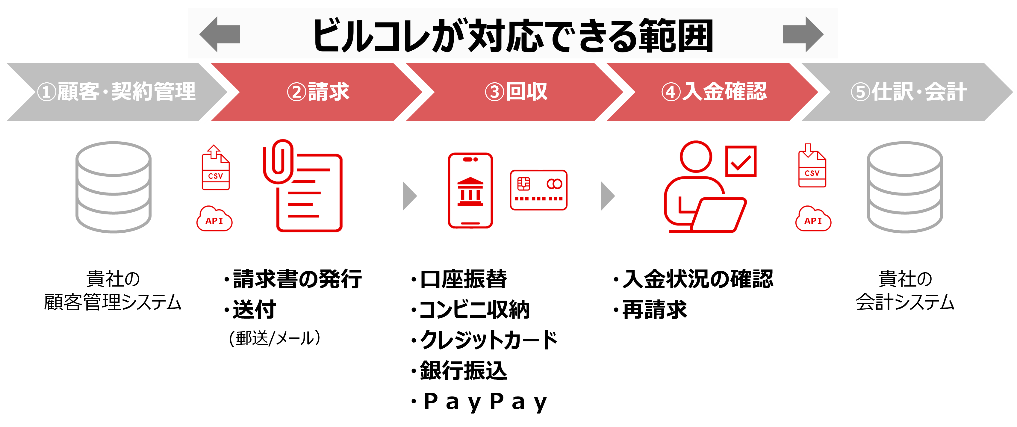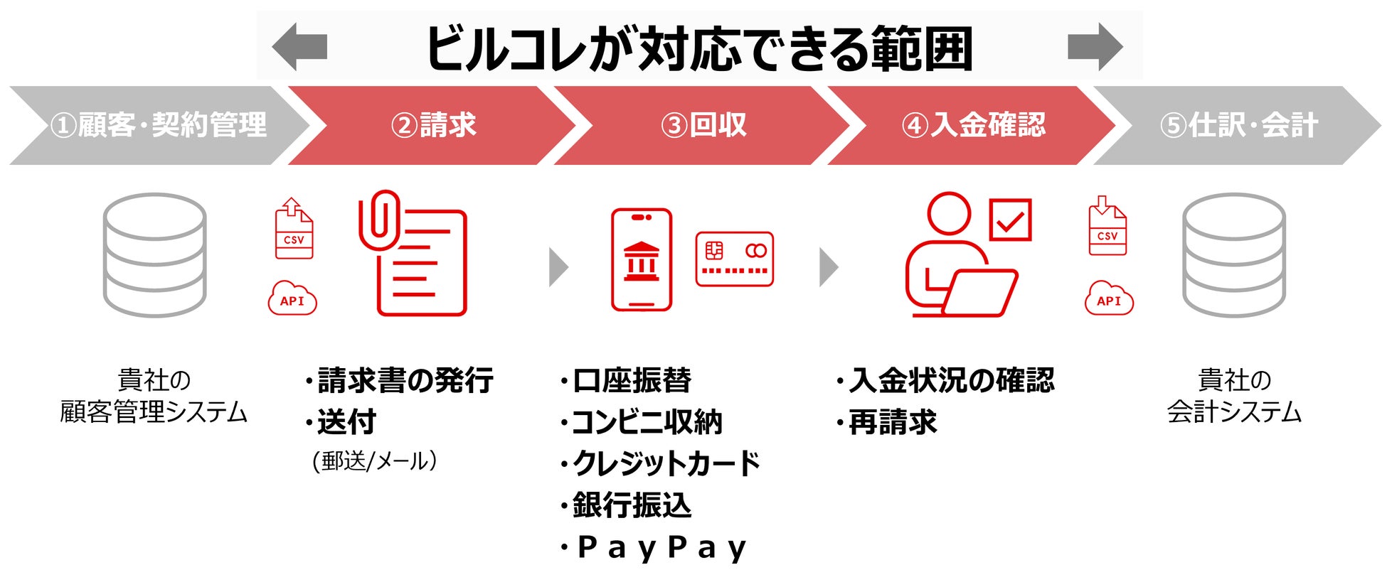 請求書の発行~送付、および複数回収手段の一元管理ができるプラットフォームです。請求プロセス(請求・回収・入金消込)に必要な機能を搭載し、請求業務の効率化を強力にサポートします。