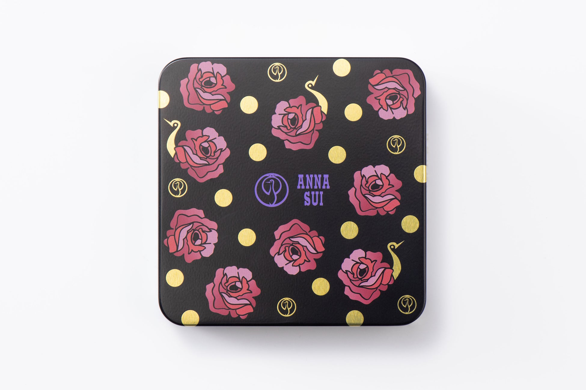 ANNA SUIを代表する人気ドレスになぞらえた「ストライプローズ」柄に、鶴屋吉信のアイコンである「鶴」のモチーフを組み合わせた特別なデザインを、手のひらサイズのかわいい缶ケースにあしらいました。ブラックとゴールドを基調としたカラーリングで、クラシカルな中にもモダンな雰囲気を演出しています。