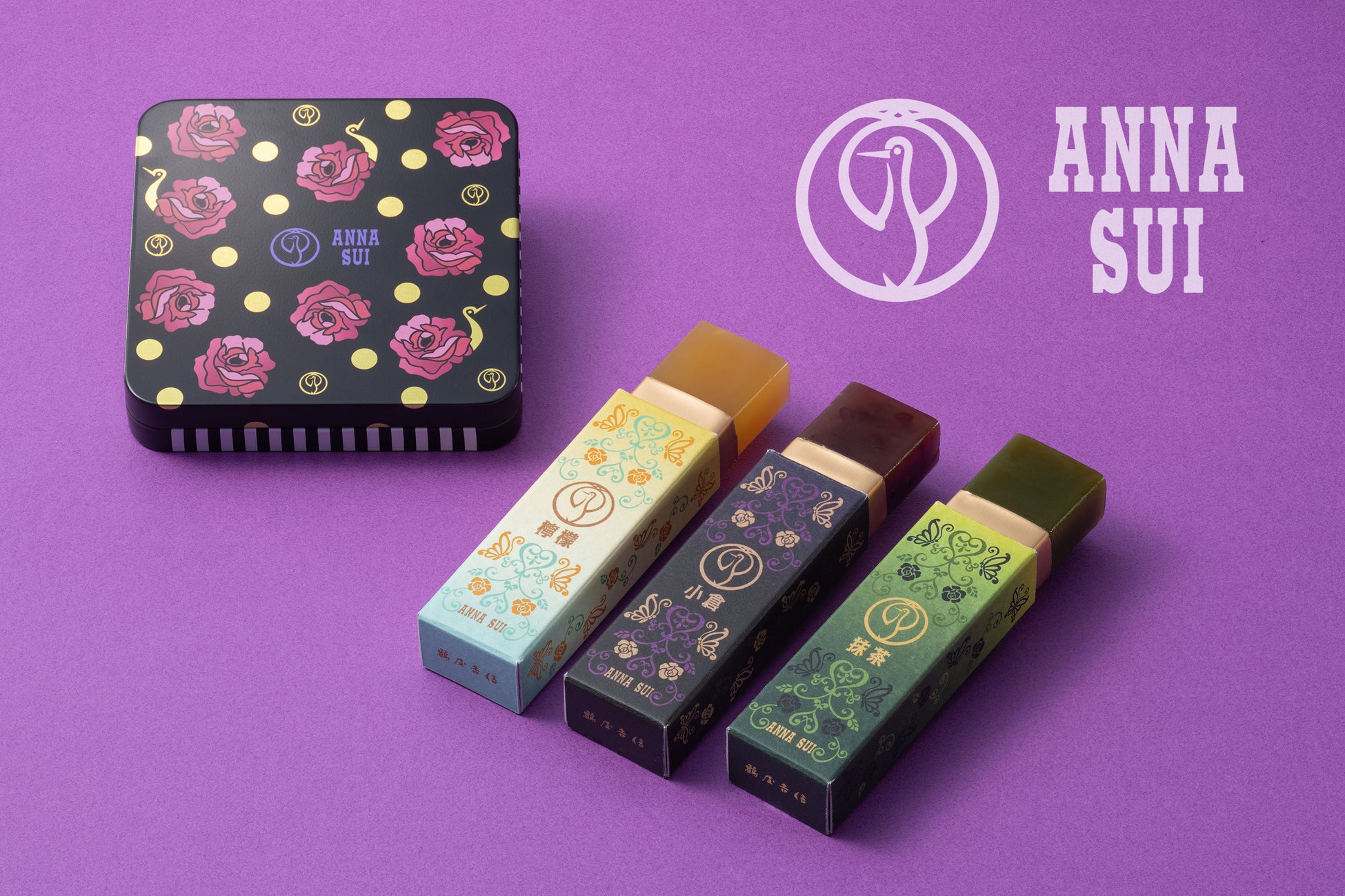 「ANNA SUI」×「鶴屋吉信」コラボレーション羊羹が10月17日(火)より数量限定販売。オリジナルデザイン缶にコラボ限定風味をこめて。