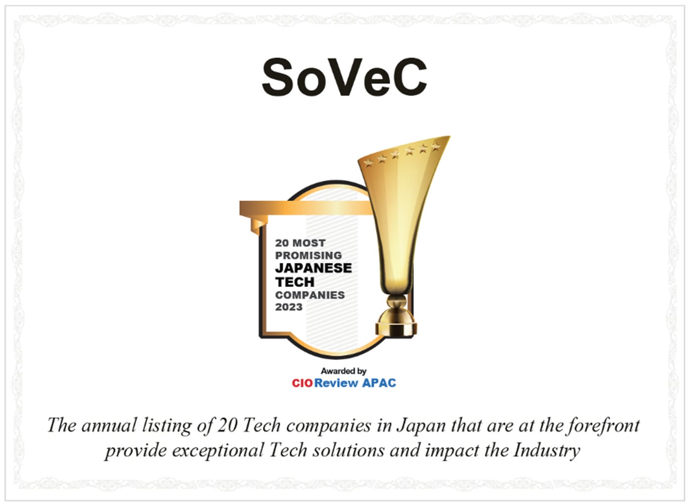 SoVeC、アジア太平洋地域のIT専門誌「CIOReview APAC」にて、最も有望な日本のテックカンパニーTOP20としてAwardを受賞