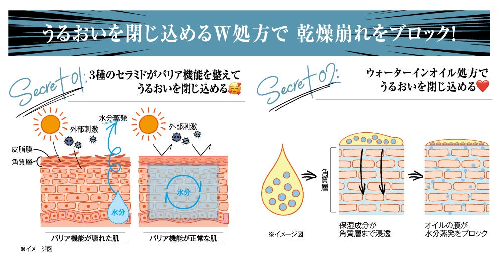 夕方まで崩れにくく、しっとり感がつづく、乾燥崩れ防止下地。