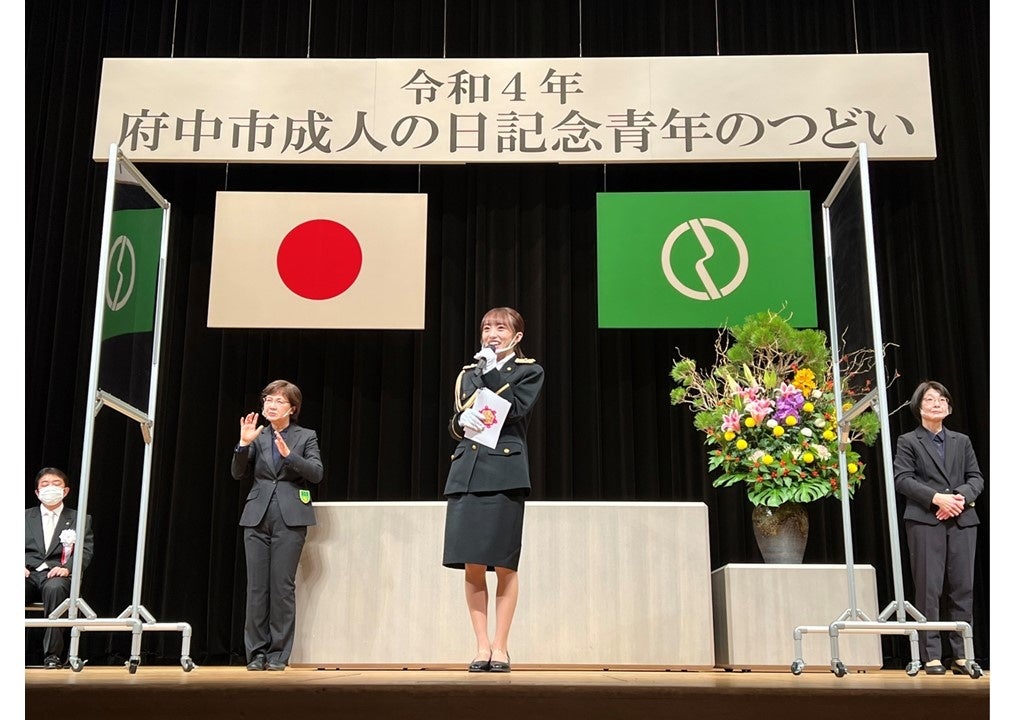 AKB48の向井地特別防犯支援官が東京都府中市の成人式に登場! 「特殊詐欺の被害からおじいちゃん、おばあちゃんを守れるのは私たち世代」