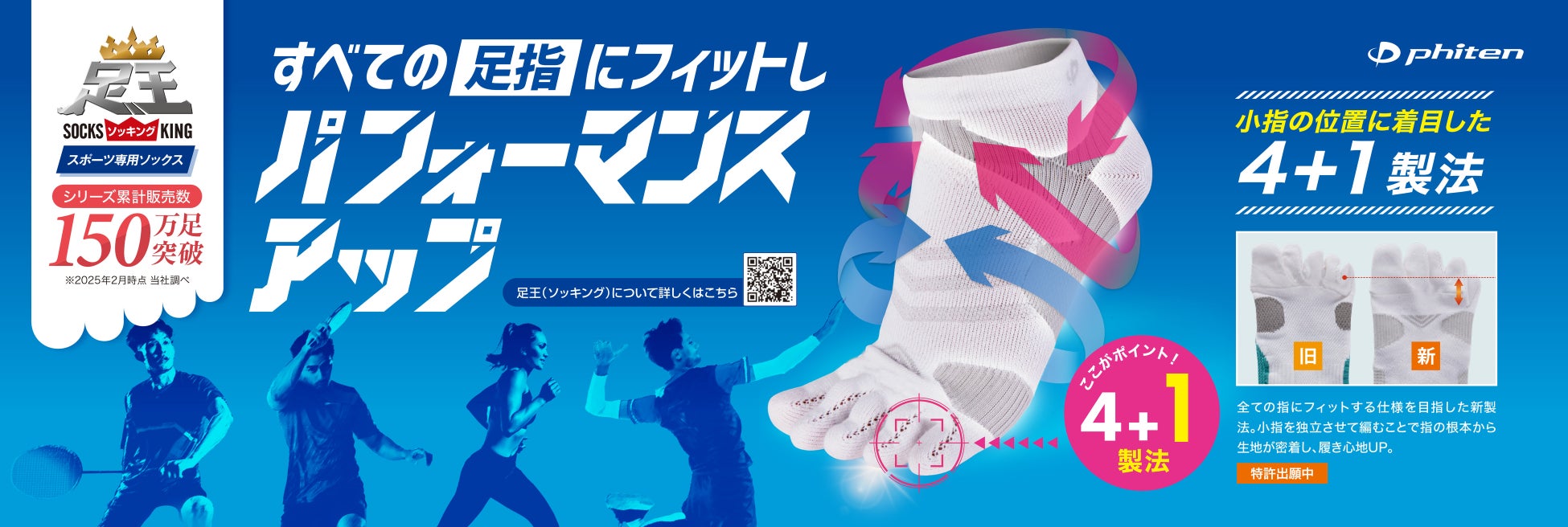 ボディケアカンパニーのファイテン株式会社(所在地:京都市中京区、代表取締役:平田好宏、以下ファイテン)は、2025年3月13日(木)より、全国のファイテンショップ、ファイテン公式通販サイトなどでスポーツ専用ソックス「足王(5本指タイプ/丸つま先タイプ)」をリニューアル発売します。