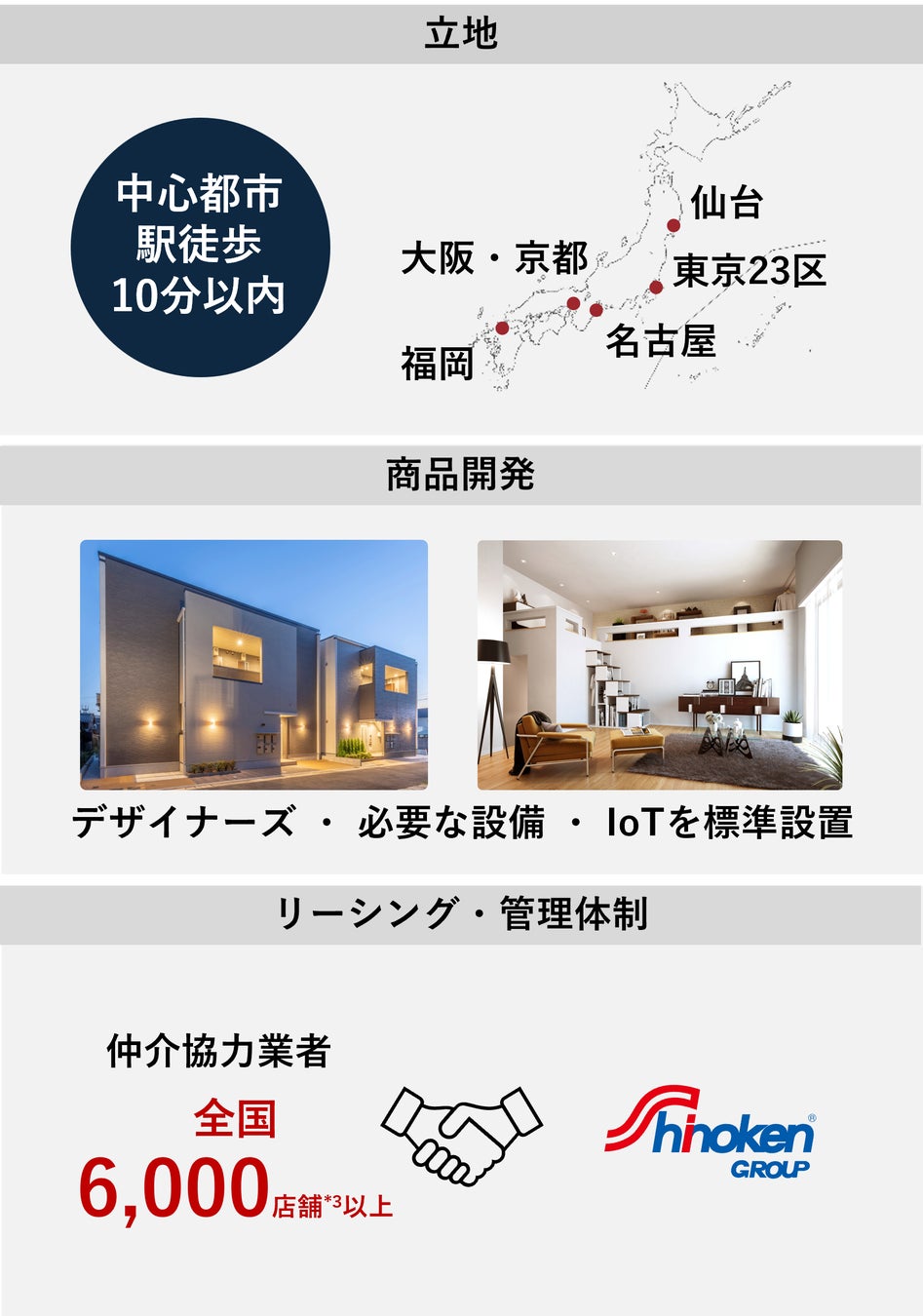 *2) 自社企画開発/全国賃貸住宅新聞 2015-2019年度 5年連続 全国賃貸住宅着工棟数ランキング 2020-2024年度 5年連続 全国賃貸住宅完工棟数ランキング