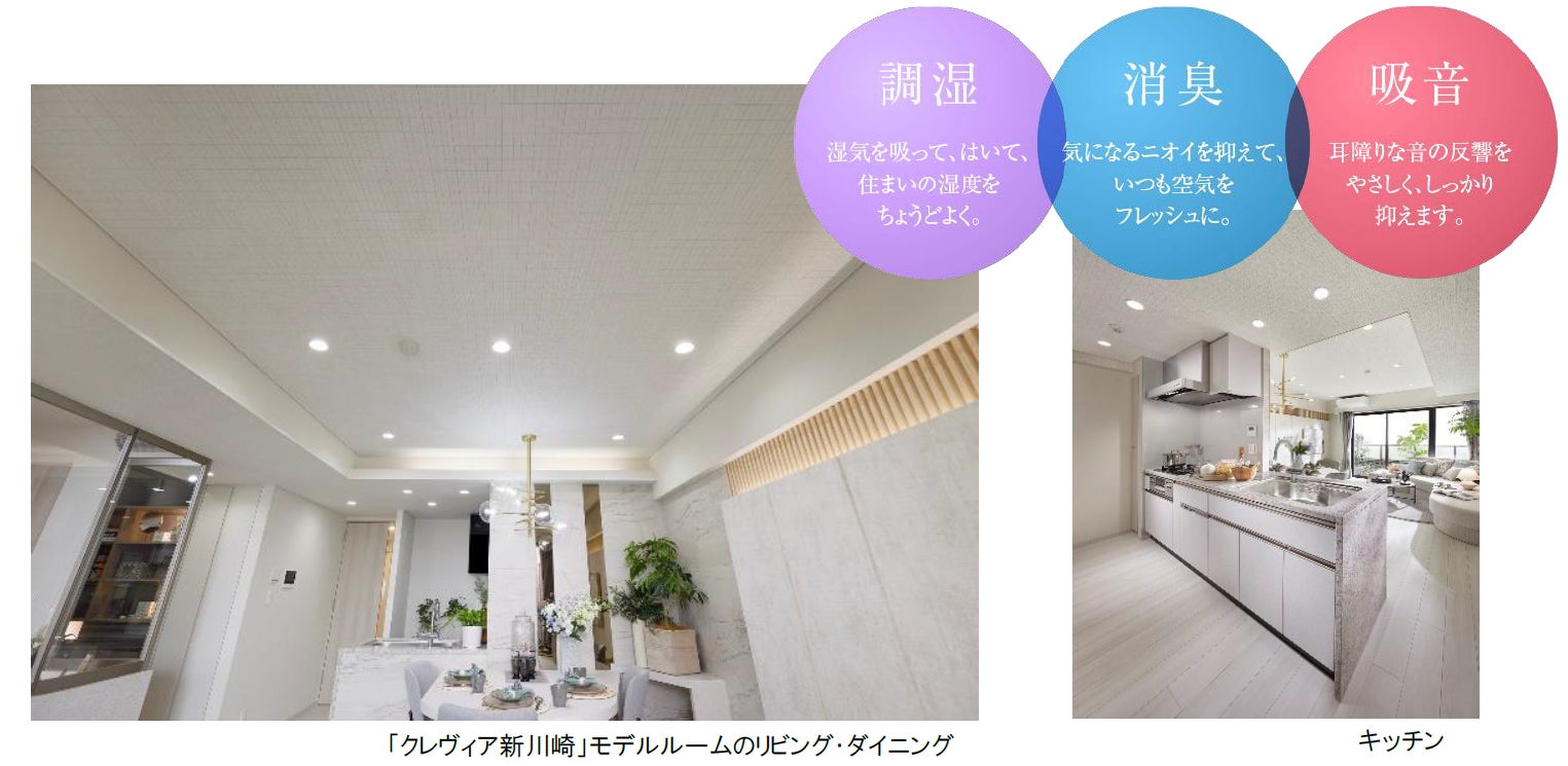 伊藤忠都市開発の分譲マンション「クレヴィア新川崎」に、大建工業の調湿・消臭・吸音機能を備えた天井材を採用